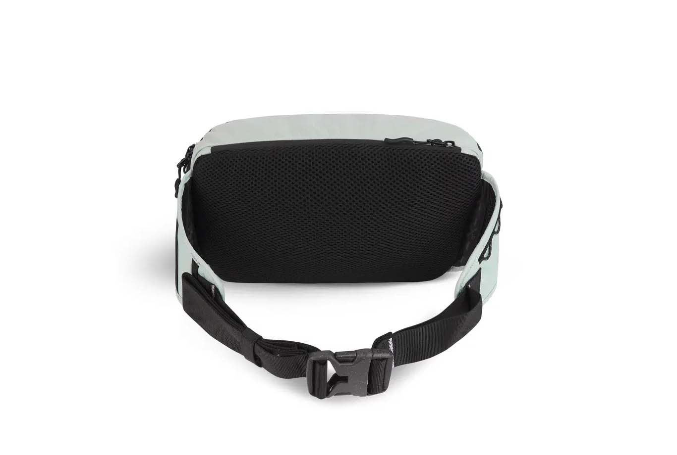 The Off Trax waistpack is the ideal waistpack for those who seek true adventure riding off the beaten path. Compact and functional, the Off Trax waistpack has a rugged and ergonomic design with a zippered closing system. The PFC-free durable water-repellent treatment guarantees maximum protection against the rain and unpredictable weather so that the contents stay dry all day long. For comfort, it features an ergonomic and breathable mesh back panel. Designed to keep you well-organized, we included a fleece-lined pocket to store your phone, sunglasses, or any other valuables, and elastic mesh pockets on the sides to stow and secure water bottles. Our signature super tough active waistpack will last forever, but if for some reason you do end up wearing it out, we thought of that, too. Give it a second life by cutting "along the dotted line" (just follow the instructions printed inside) to transform your pack into a separate toiletries bag. Sustainably designed to handle whatever the mountain throws at you, our Off Trax waistpack will follow you anywhere.