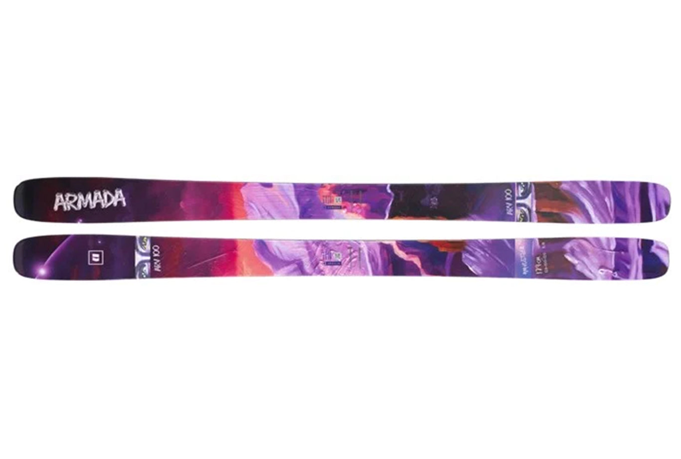 Bring your "A" park game up to the top of the mountain, and let the world know what you've been working on with the Armada ARV 100 Skis. This mid-wide version of the legendary ARV is the one to take out the door when the conditions are mixed (or unknown) - the 100mm profile won't let you have a bad time regardless. Born to be a winner with a Poplar wood core, Ash binding insert for added pullout strength, sturdy 2.5mm Impact Edges and Armada W3dgewall construction.