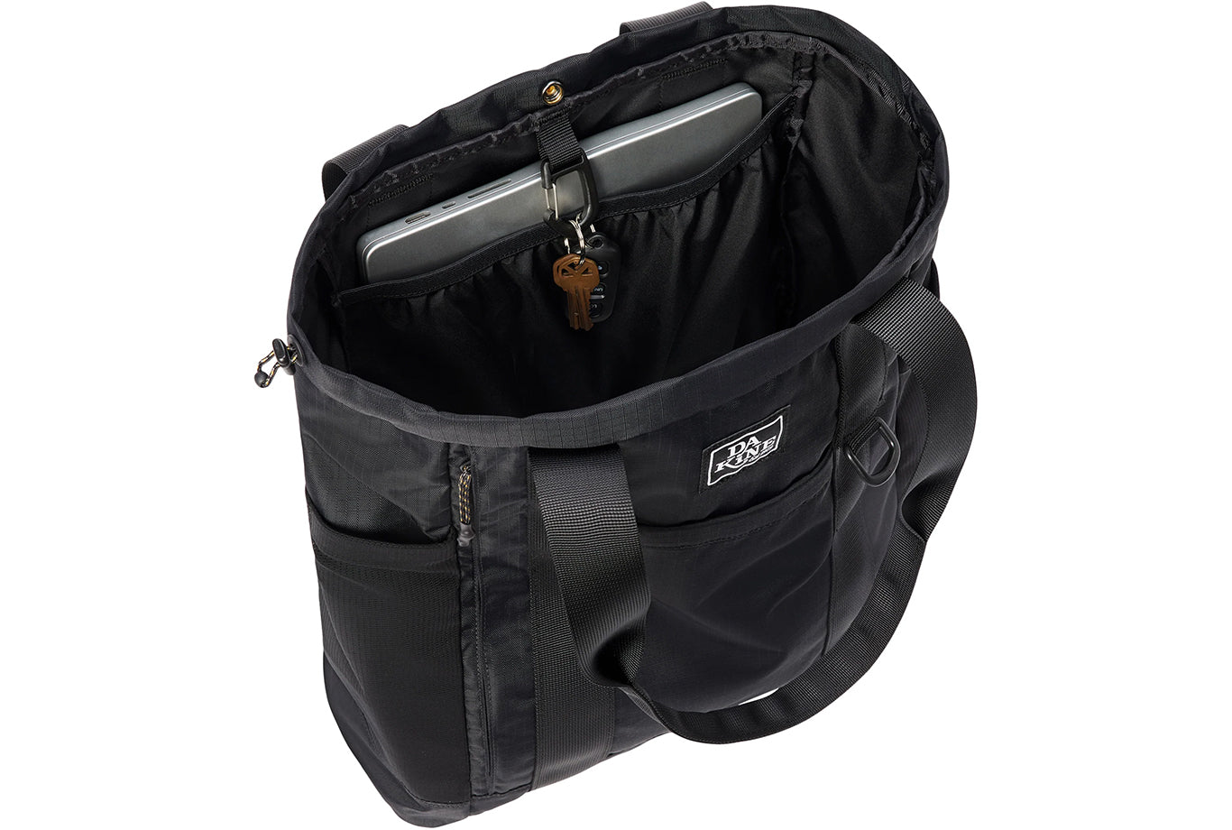 Blend style and everyday functionality with the Jesse Tote 22L, part of our J-Connection Series of compatible bags and accessories, all designed with attachability and adjustability in mind. Made to carry everything you need for most outings, this tote bag centers around a spacious main compartment with a snap and drawcord pull closure, while a non-padded laptop sleeve that fits most 16-inch computers keeps your machine neatly tucked away. Exterior zippered pockets provide additional storage and stretch mesh water bottle pockets hold your favorite beverages close at hand. An interior pocket with a key clip means you’ll always know where they are, and a handy D-ring on the external webbing allows you to attach other items from our J-Connection Series. Just toss everything inside and head out the door.