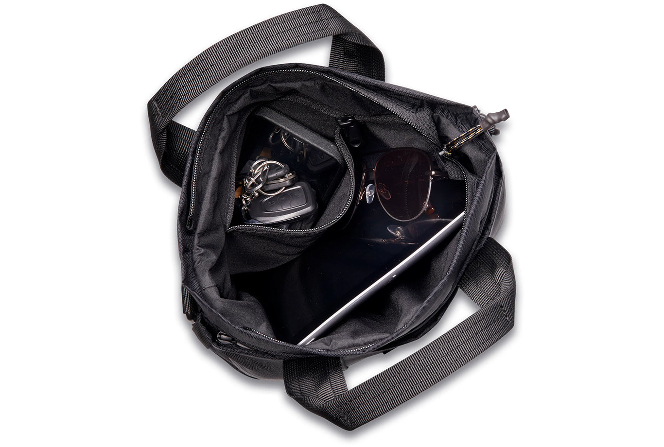 Bring a touch of style to everyday occasions with the Jinx Mini Tote, which can be slung over your shoulder or simply carried by hand. Part of our J-Connection Series of compatible bags, the Jinx’s main zippered compartment is ideal for larger items such as water bottles and beverages, while the interior zippered pocket provides safe storage for smaller valuables. A hidden front zippered pocket lets you securely stash items for safekeeping, and the comfortable webbed handle allows for easy hand carrying.