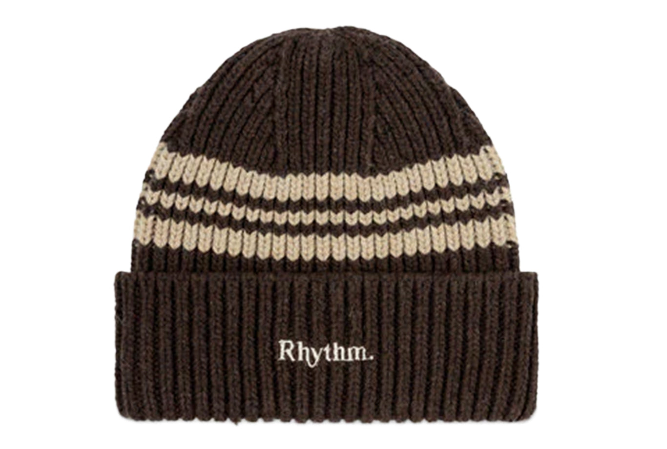 Embrace warmth and style with the Stripe Beanie in Cedar. This chunky rib knit beanie features a contrast stripe detail and a folded cuff for added comfort. The logo embroidery showcases quality craftsmanship, making it a must-have accessory for cooler days, finished with Rhythm labels and trims for a refined touch.