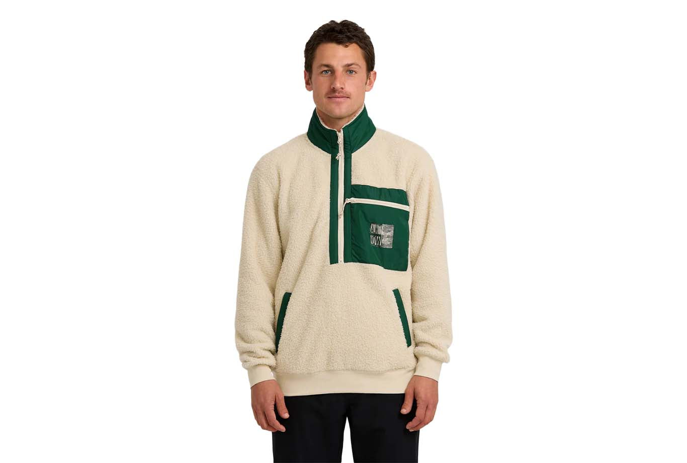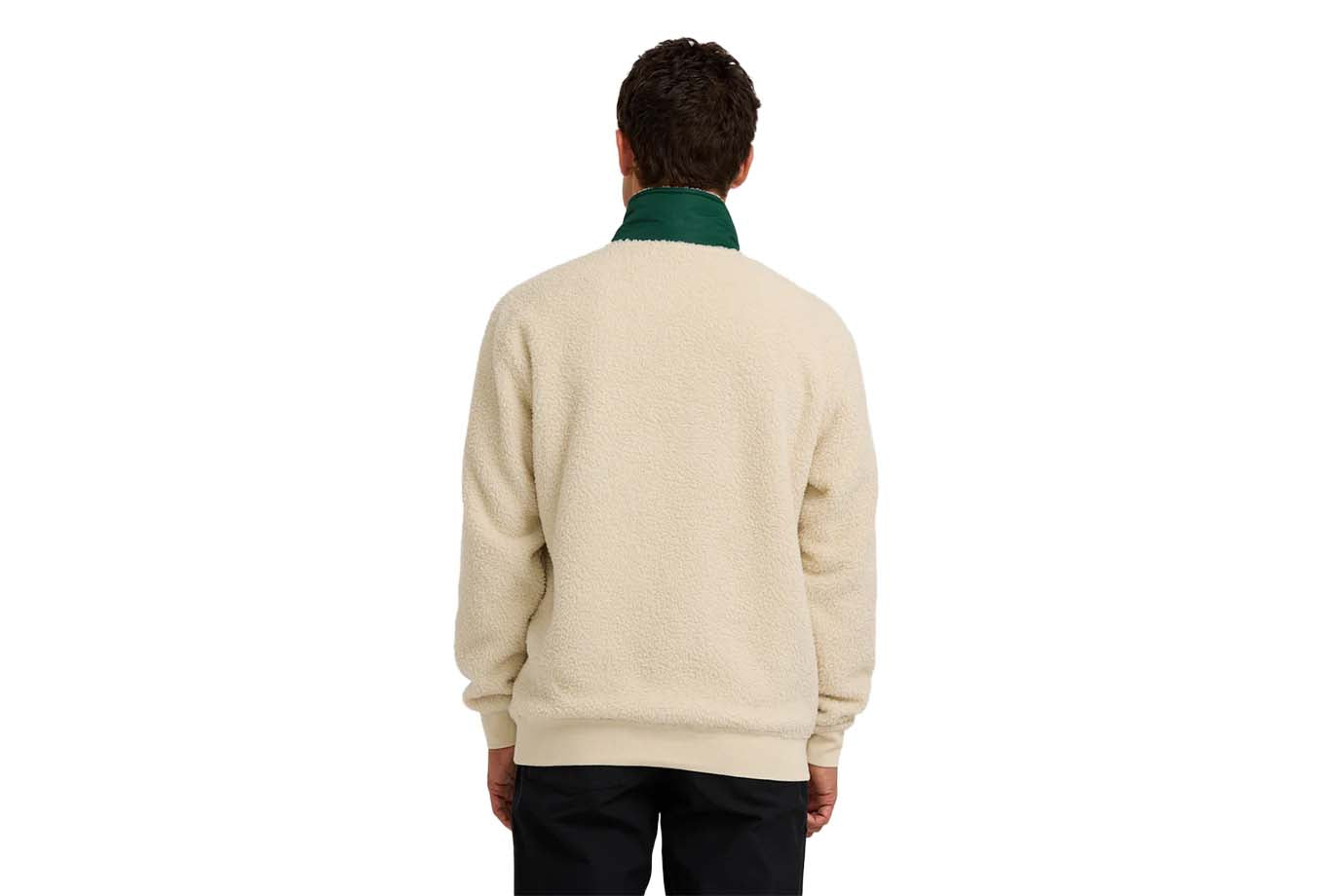 Our throwback mock neck sweatshirt brings retro vibes with an oversized fit and contrast ripstop panels. Cozy fleece construction pairs with practical chest and hand pockets for everyday comfort. Featured here in the Beige colorway.