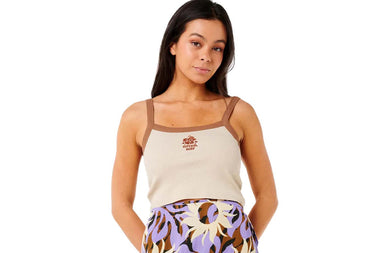 The Cala Nights Baby Tank is the ultimate throwback essential. Designed in a ribbed stretch cotton fabric, this fitted cami hugs in all the right places while keeping things soft and breathable. Subtle embroidery adds a touch of laid-back charm, making it a perfect match for high-waisted shorts or a flowy skirt. Whether you're hitting the boardwalk or lounging in the sand, this tank is made for sun-drenched days.