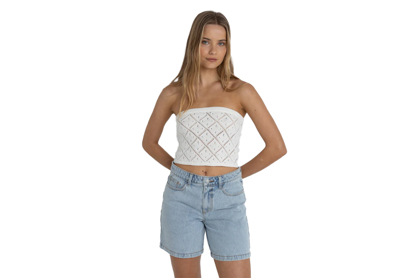 The Islander Strapless Knit Top in White blends elevated style with functional wearability, crafted from tbd. A versatile essential designed for everything from beach days to off-duty afternoons.