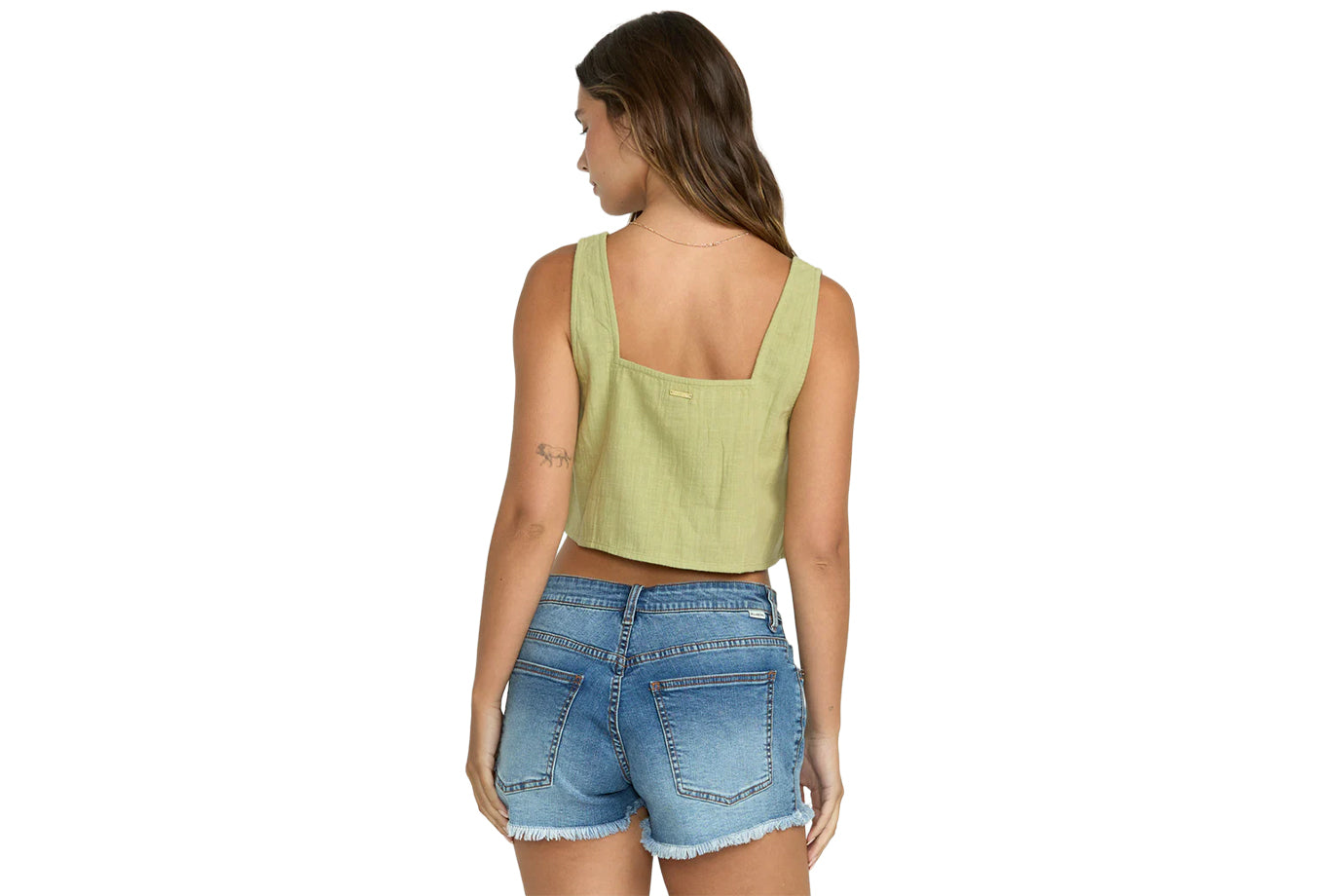 Breathe easy in this airy, 100% cotton tank with a cropped, square neckline and metal accent. Double slub gauze keeps you cool and comfortable.