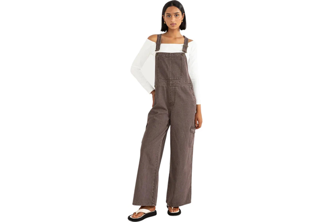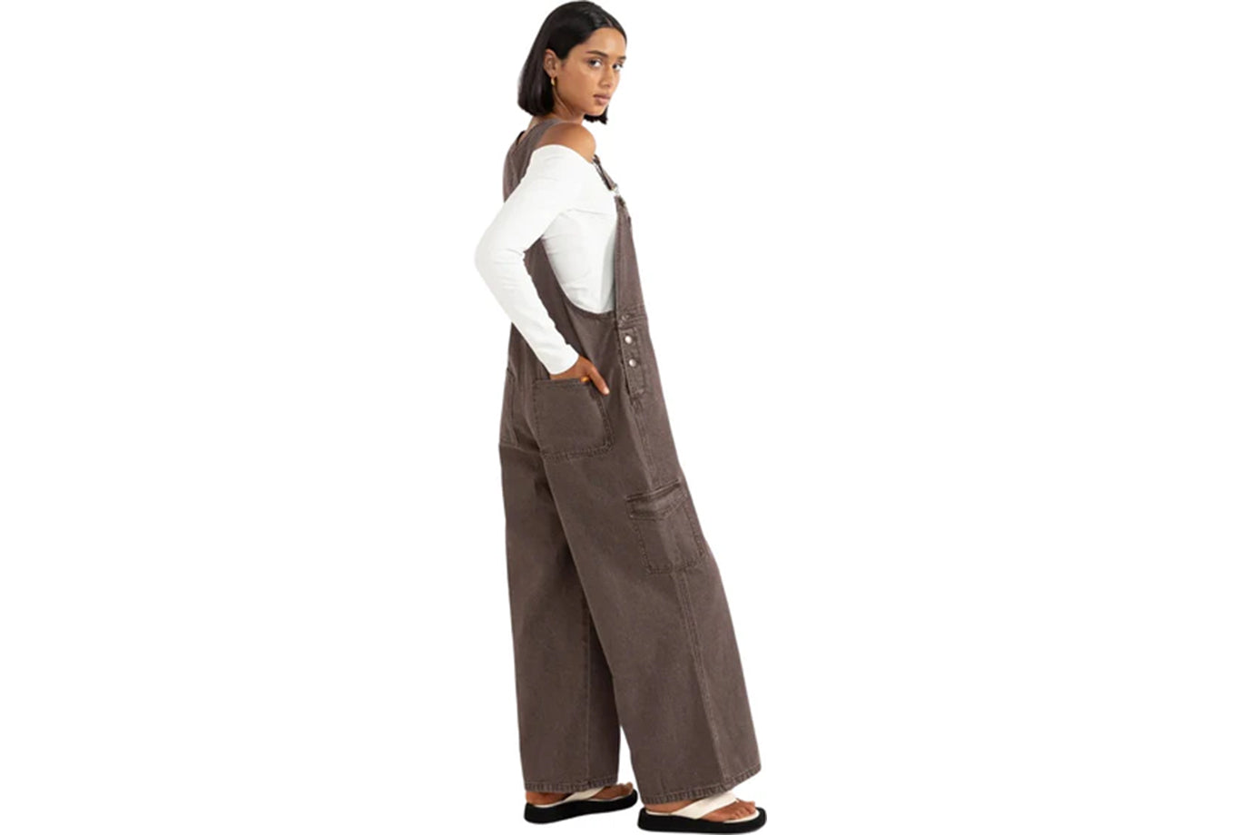 Relaxed and effortless, these oversized denim overalls are perfect for laid-back days by the beach. With brushed gold trims and wide-leg detailing, they offer both style and comfort in a rich chocolate hue that complements coastal living.