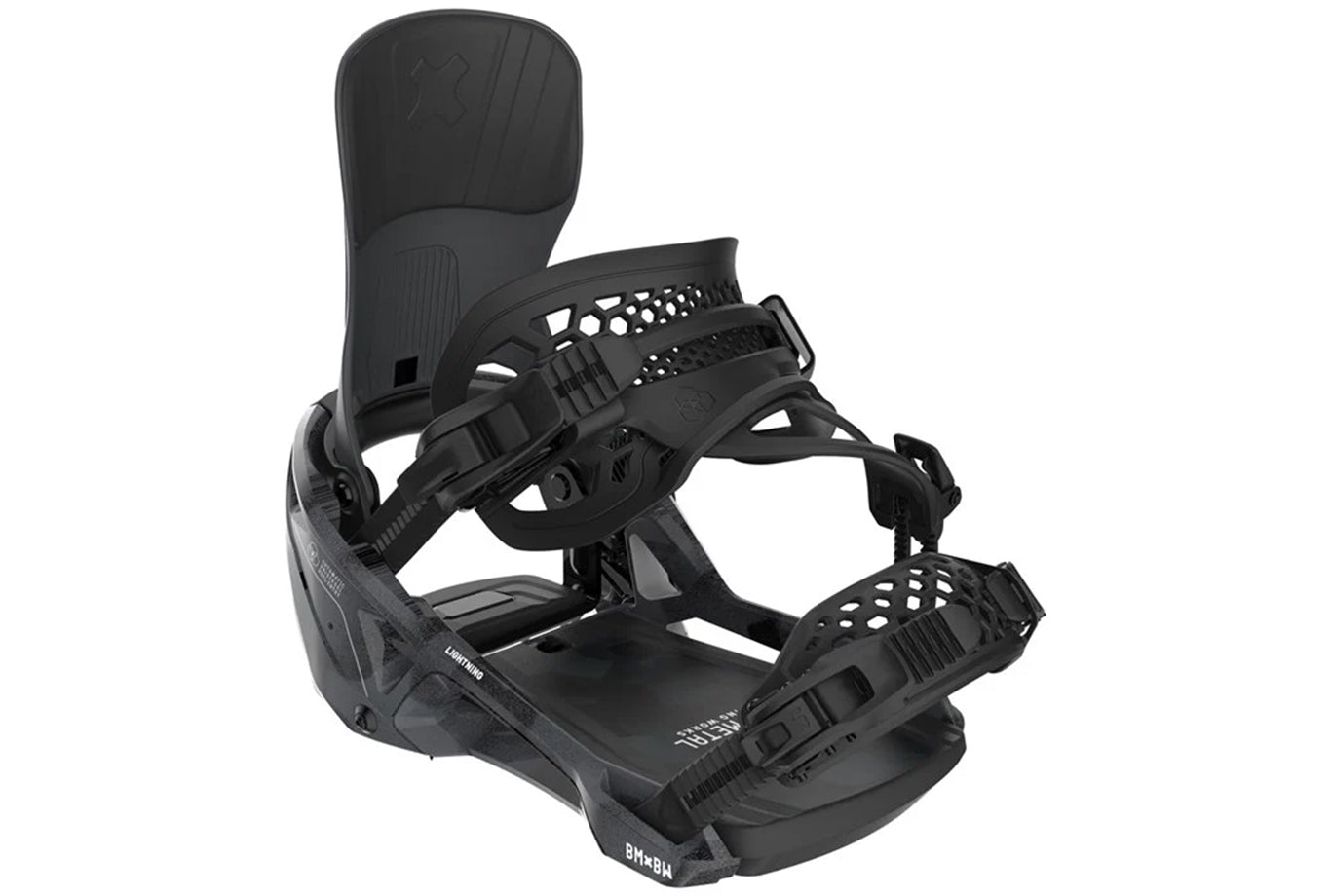 Get ready! Bent Metal has joined forces with Supermatic technology creating the all-new Bent Metal Lightning Supermatic Snowboard Bindings. These are game-changing, go-anywhere bindings that combine speed, comfort, and universal boot compatibility in one powerful package. Just slide your foot in through the back, step down on the heel pedal, and the highback locks you in — ready to ride in seconds. A quick release lever makes getting out just as easy, and with full strap and ratchet functionality, they ride and feel just like classic two-straps when you want that familiar control. From steep slopes to deep pow, the Supermatics are built to keep you moving fast and ripping hard in any condition.