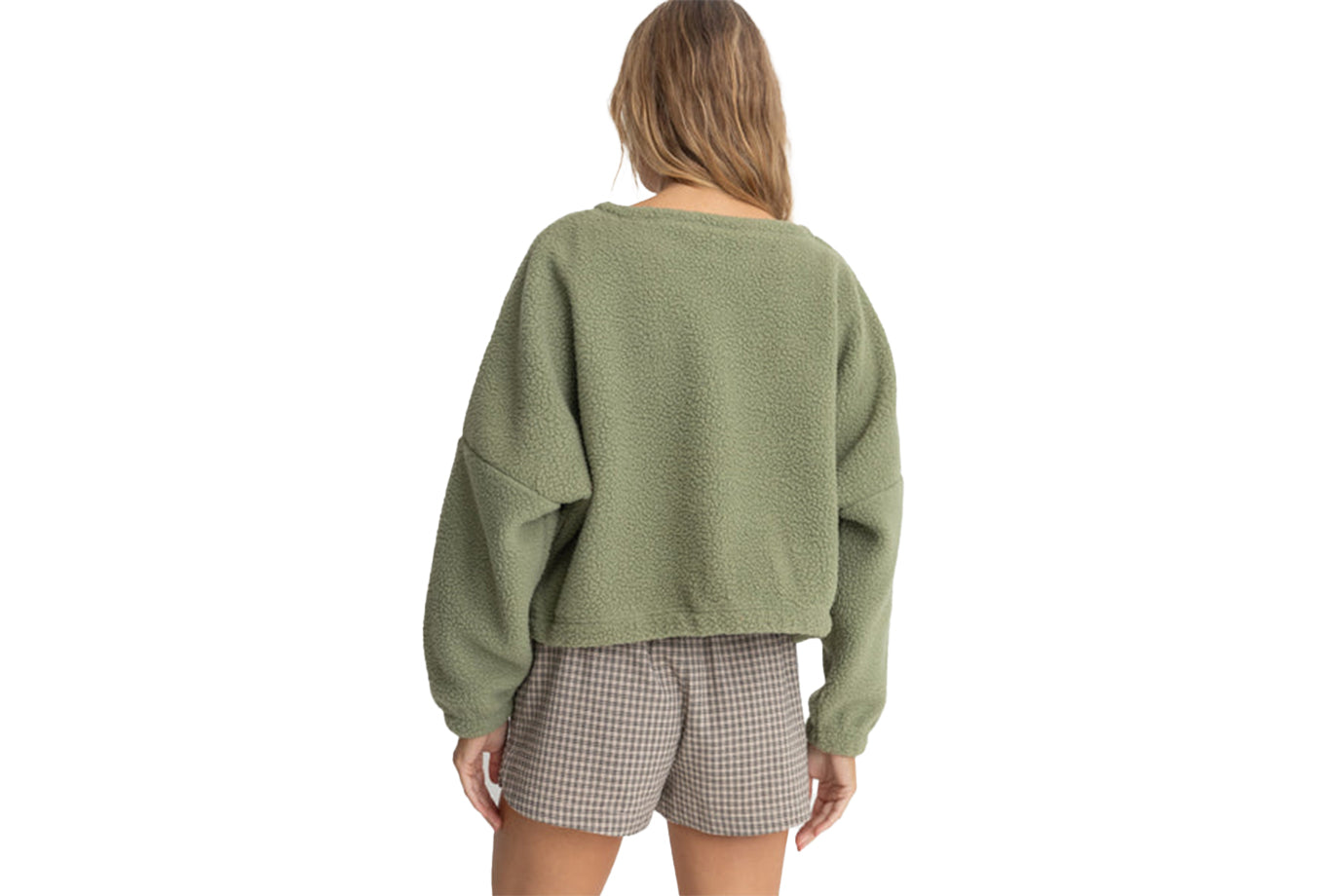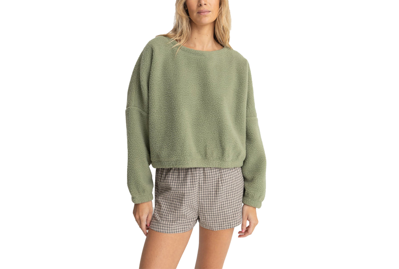 Constructed entirely from 100% Polyester super-soft sherpa fleece, this oversized Jyoti Reverse Fleece boasts a cosy, slouchy style with a scoop crew neckline, dropped shoulders, and a mid-length design.
