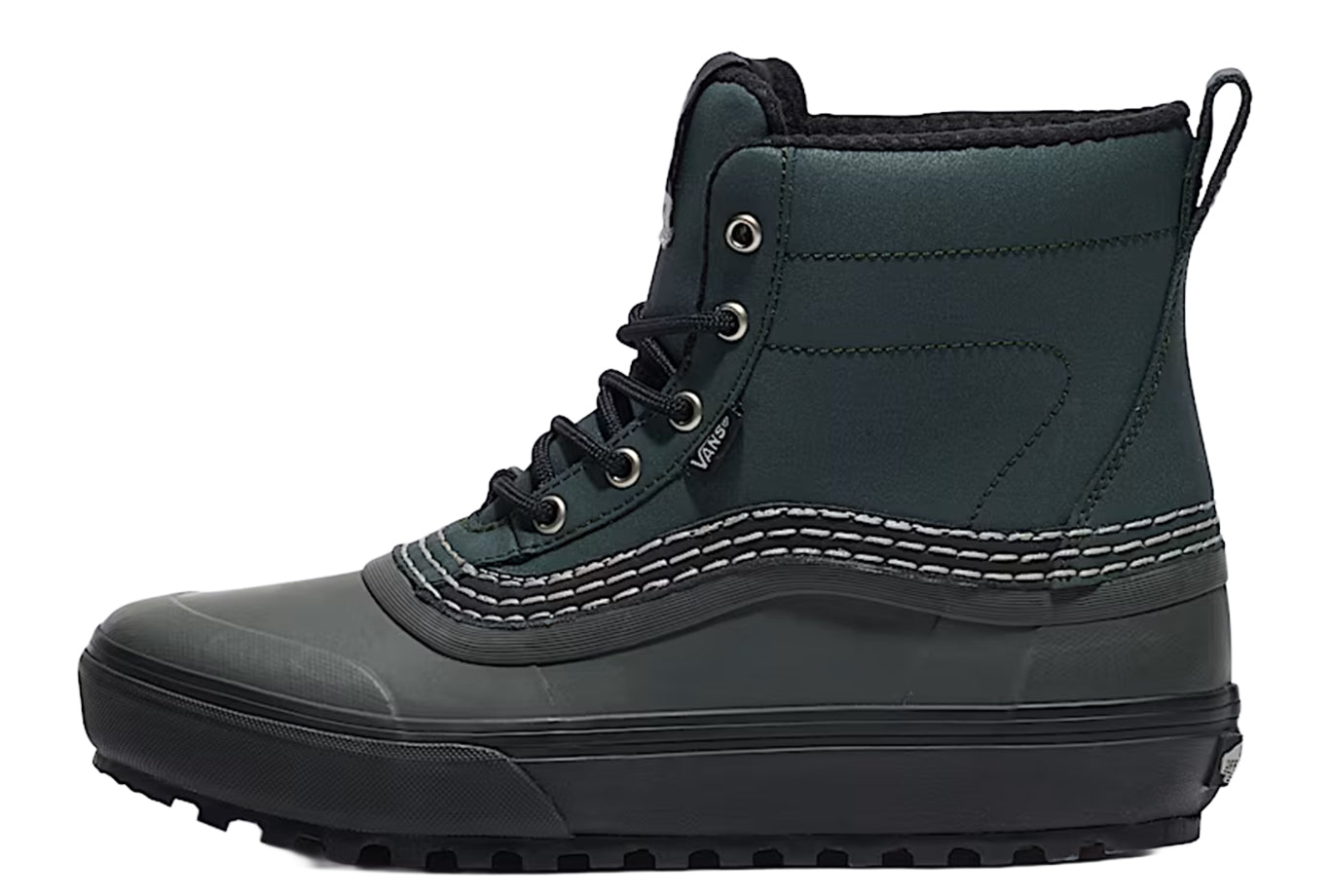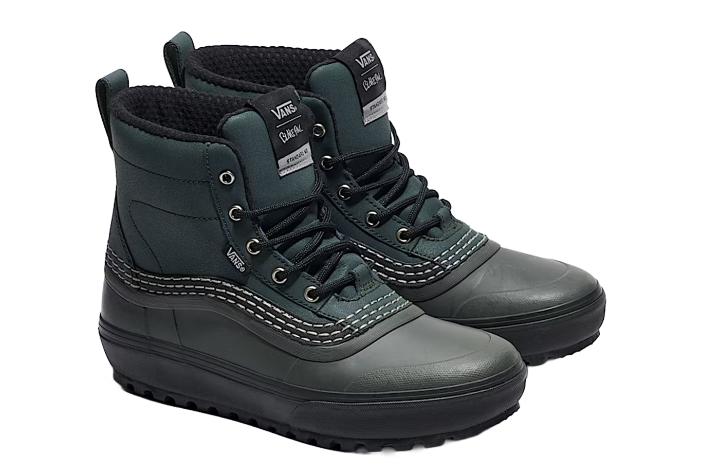 You are Made For The Elements. These are your Vans. Watch Blake Paul ride a snowboard and it will come as no surprise that he grew up in the shadow of the Grand Teton in Jackson, Wyoming. A resort as gnarly as the history of the West, the incredibly steep, variable, and challenging terrain of Jackson Hole was Blakes playground as a youth, laying the freestyle foundation that he is known for today. This season, Blake brings his easy-going outlook and unmatched backcountry style to a versatile collection of winter footwear. Practical, packable, and wear-at-the-bar-able, the MTE Standard Mid Waterproof Boot X Blake Paul is a downsized version of Vans best-selling Standard snow boot, replete with a timeless colorway designed by Blake himself. With waterproofing to keep your feet dry, a 100-gram weight insulation package for warmth, and a Standard Snow MTE outsole featuring All-Trac all-terrain rubber, this mid-top boot made with leather and rubber uppers blends iconic Vans style with day-to-day winter weather footwear.