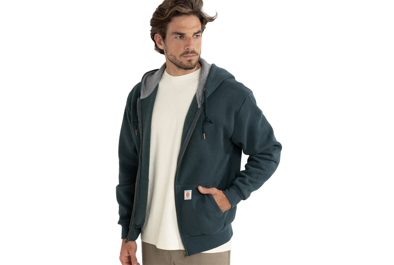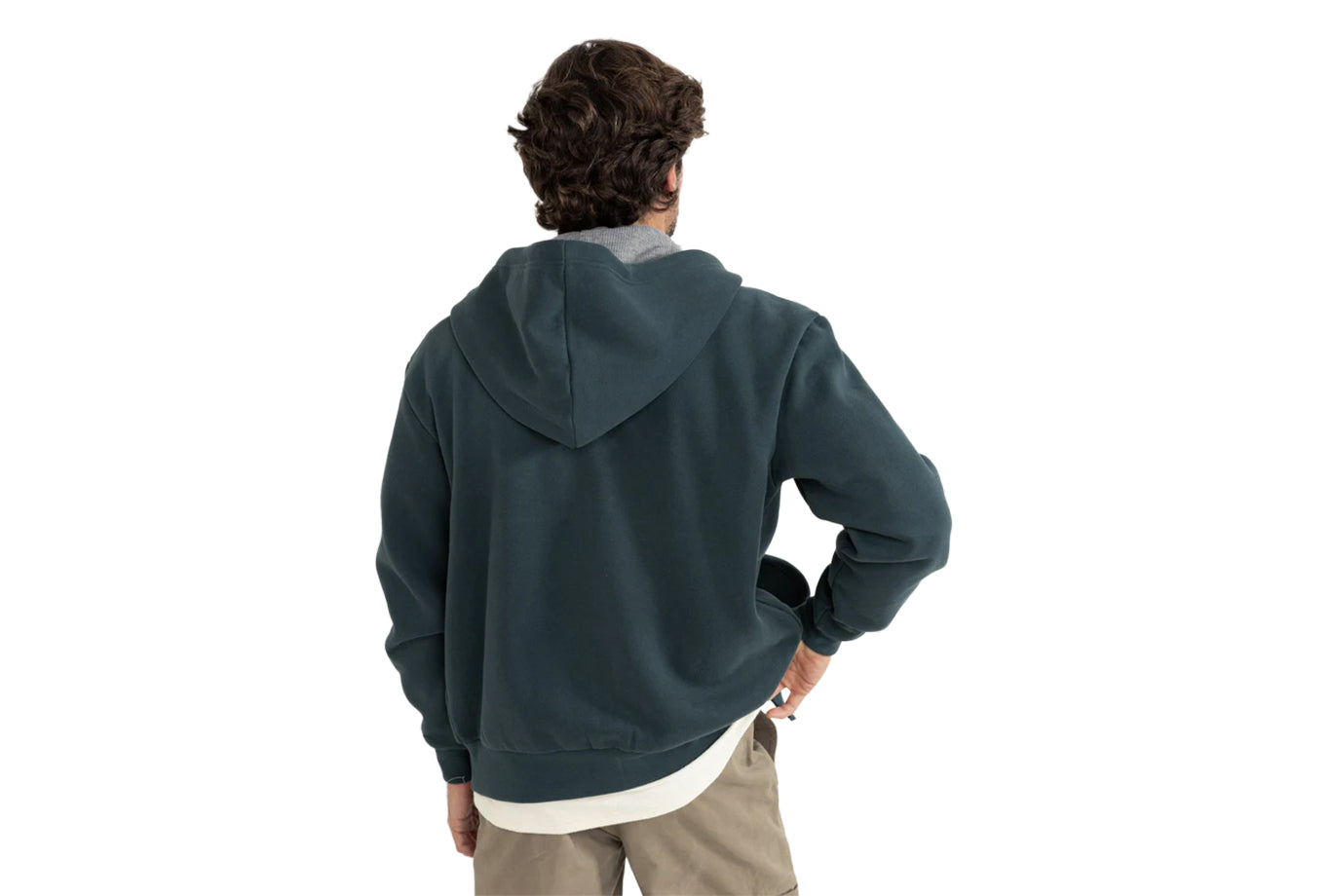 The Thermal Fleece Zip in Dark Pine offers warmth and structure in a versatile silhouette. A waffle-lined hood, metal zip closure, and patch hand pockets ensure function and style, while a Rhythm patch label adds a signature finish.