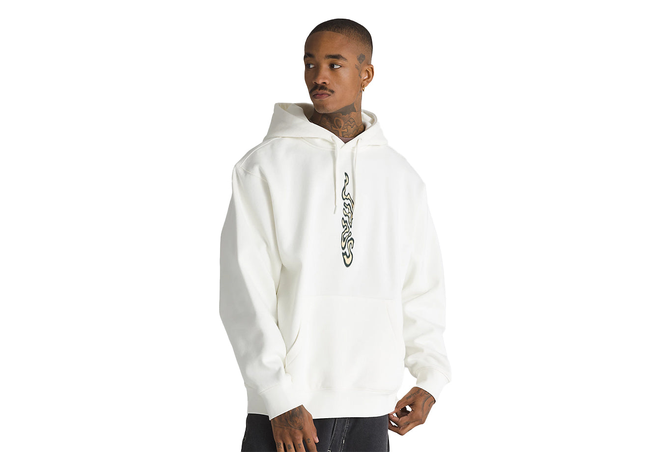 Rock your deck in the Skate Blurb Pullover Hoodie, a baggy fit, brushed back French hooded sweatshirt made with a comfortable cotton blend fabric. The hoodie has a front pouch pocket with a front graphic screen print and Vans® Skateboarding labeling.