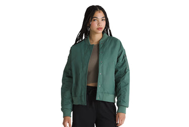 The Bennett Bomber Jacket is a classic bomber jacket with that special Vans® sense of style. Made of slick flight satin with a poly fill, slanted front pockets and shirred sleeves, you'll be ready for anything when you slip it on.
