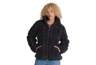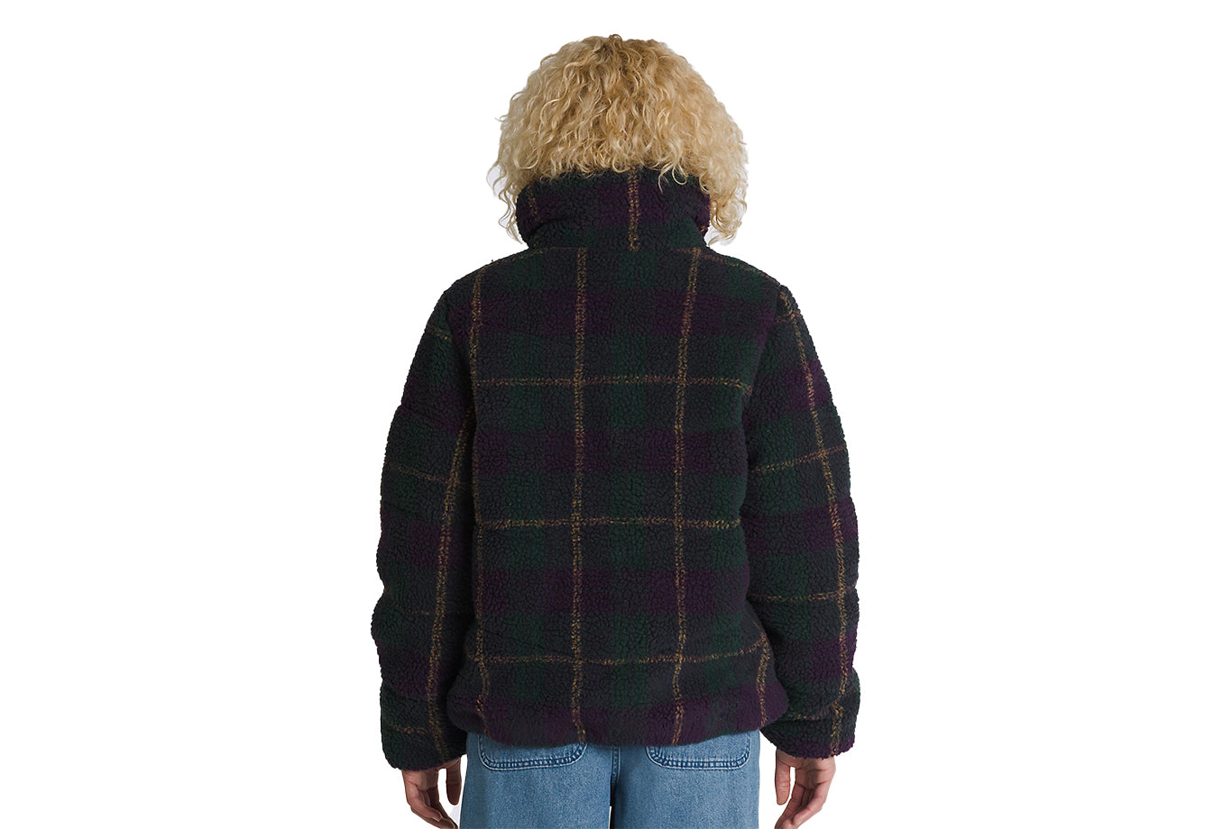Bundle up in the Foundry Plaid High Pile Puff Jacket, a high-pile zip-front jacket with soft Dupont Sorona fill for long-lasting warmth. It features welt hand pockets, taffeta lining, and a Vans® logo emblem on the front.