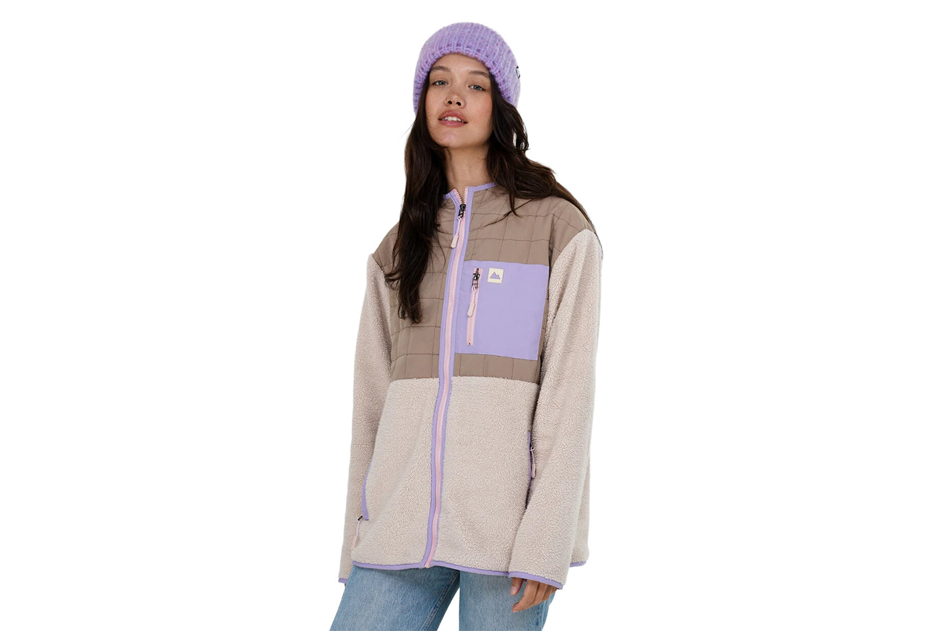 • Color: Cream, Tan and Lilac with pink zippers.