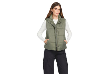 Cozy up in a lightweight layer that delivers next-level warmth and style. Crafted with a soft down taffeta shell and polyester insulation, this green vest provides reliable warmth without bulk. The high neck, quilted design, and handy welt pockets make it a versatile layer for any cold-weather adventure.