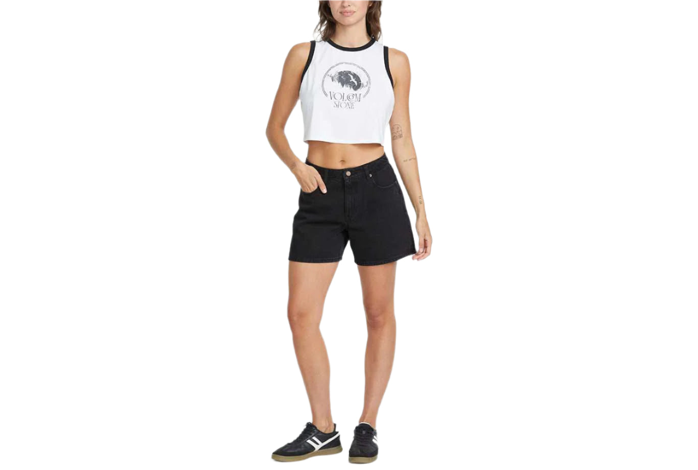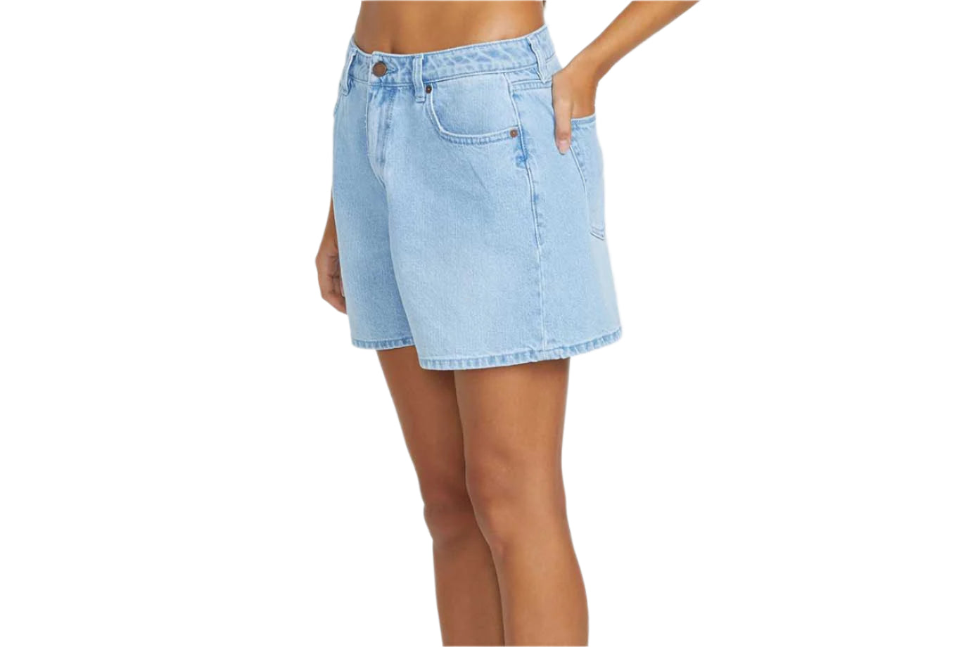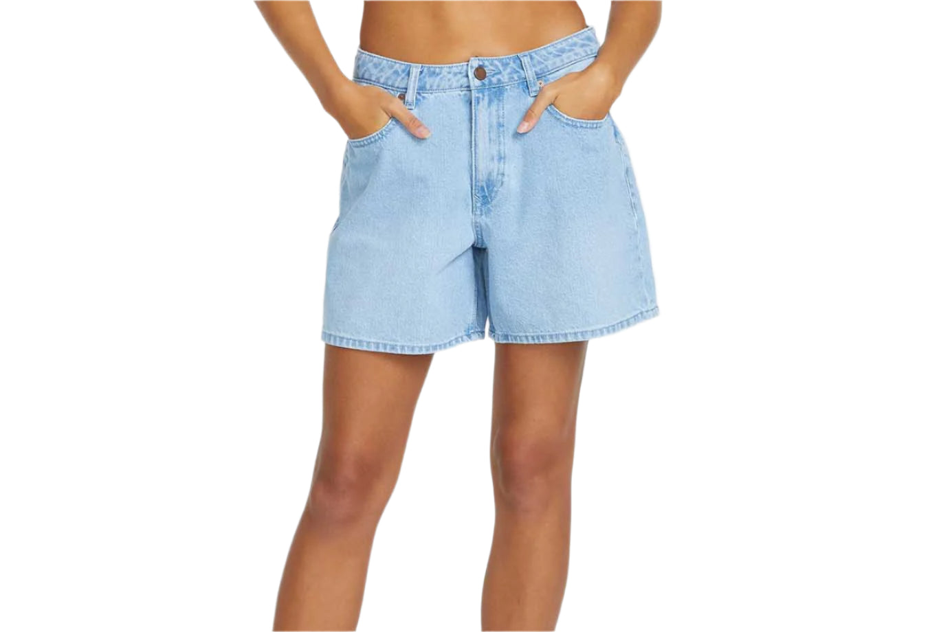 Casual cotton denim meets modern boyfriend style. These high-rise shorts flaunt a relaxed, lived-in vibe with soft, premium ringspun denim. Volcom signature branding.