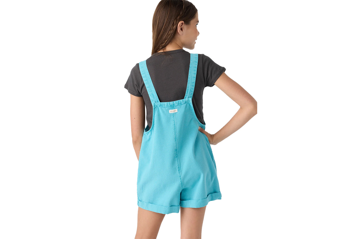 • Front Hip Pockets, Adjustable Back Straps With Button Detail, Rolled Hem