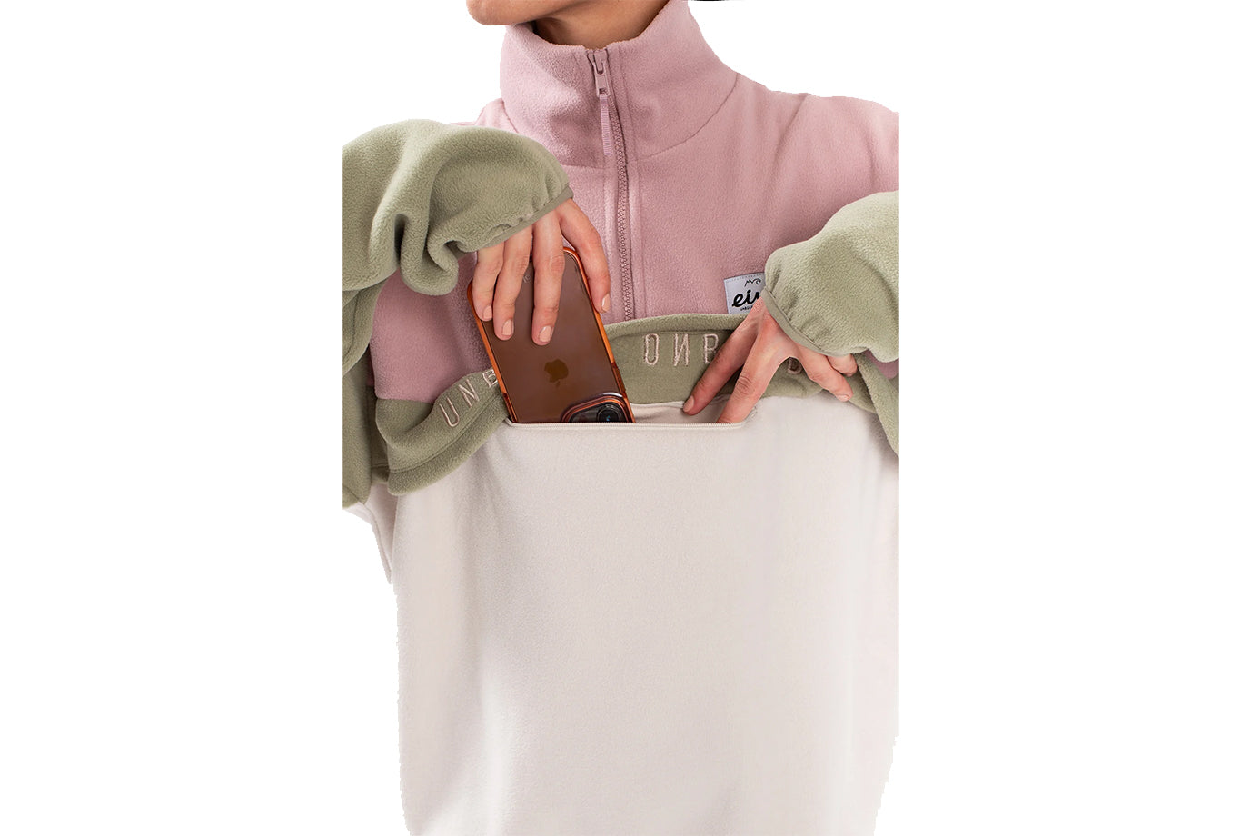 A comfortable soft fleece in a slightly oversized fit for a bold look, in black. The warm collar can be opened and closed thanks to the YKK® zipper, as well as the spacious front pocket.