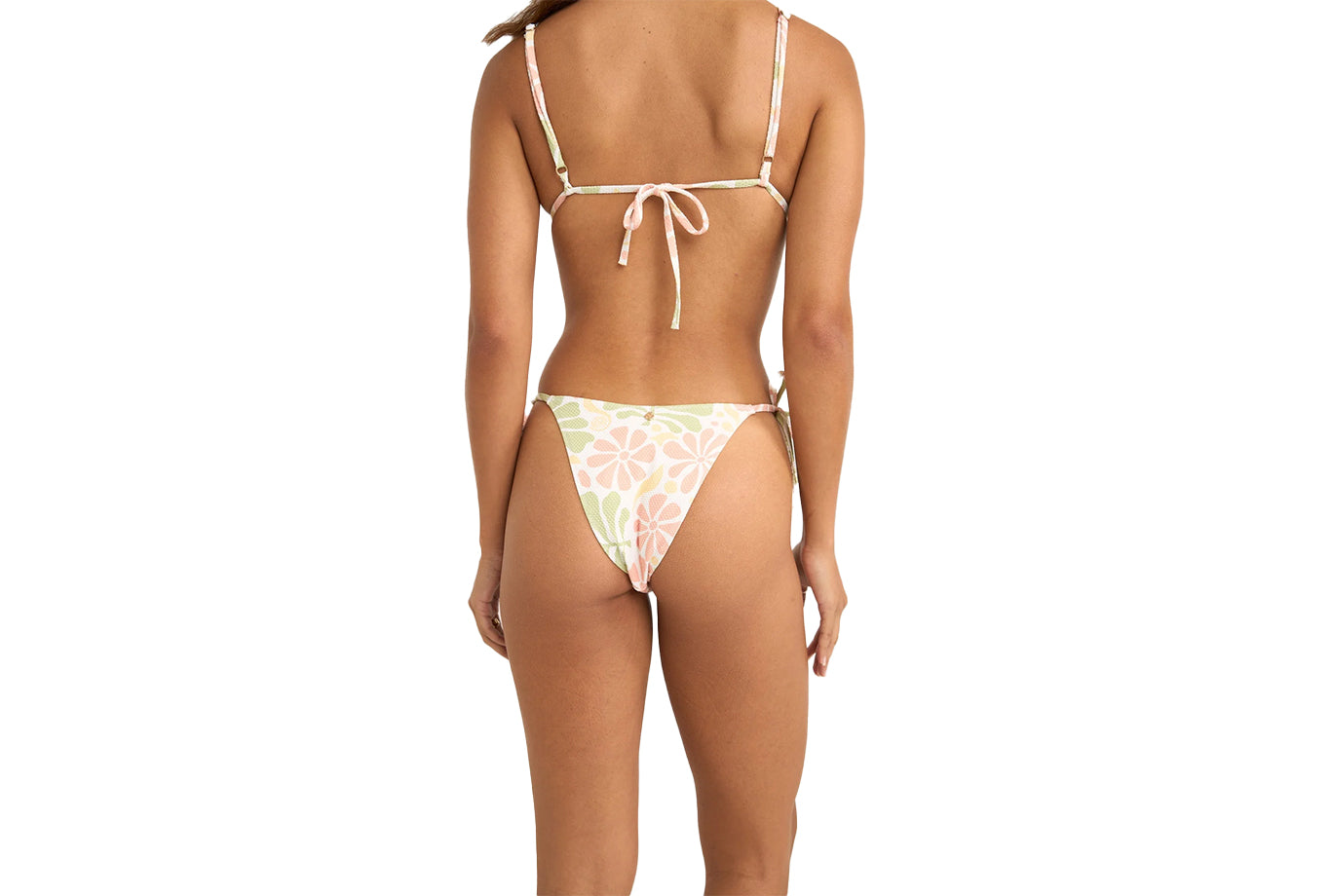 Our Marloe Floral Tie Side Hi Cut Pant is crafted from a soft polyester blend for a soft touch and silky feel, and features a unique brass tone toggle detail, for a touch of elevated charm. Featuring a high hip, low coverage fit and a flattering front scoop.