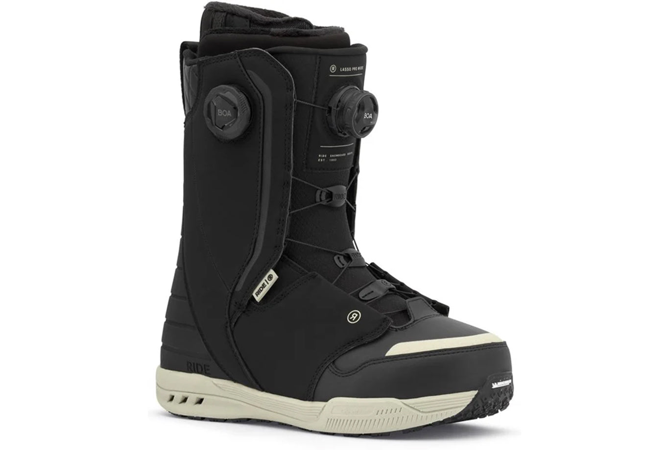 The Ride Lasso Pro Wide Snowboard Boots take a legendary favorite and give it the roomy upgrade your feet have been waiting for. Packed with the Intuition™ Dream Liner and Tongue Tied™ Hybrid Harness, they deliver even pressure and locked-in heel hold without the squeeze. The BOA® H4 Coiler makes on-the-fly adjustments a breeze, while the Michelin® Hybrid Fiberlite Sole with ECO +Slime cushioning keeps you planted and comfortable all day long. With a stiff flex and a wider fit, the Lasso Pro Wide is built for riders who want powerful all-mountain performance without sacrificing comfort.
