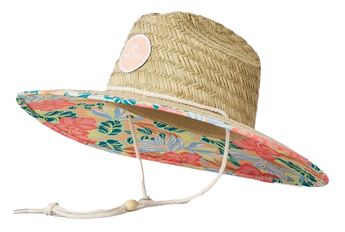 Stay cool and protected from the sun with the Mixed Straw Sun Hat. This wide-brim sunhat features a printed brim lining for a stylish look. It includes a chin strap with a wooden bead, allowing you to adjust the fit for comfort. Hand-made with care, this hat is adorned with a badge, adding to its unique appeal.
