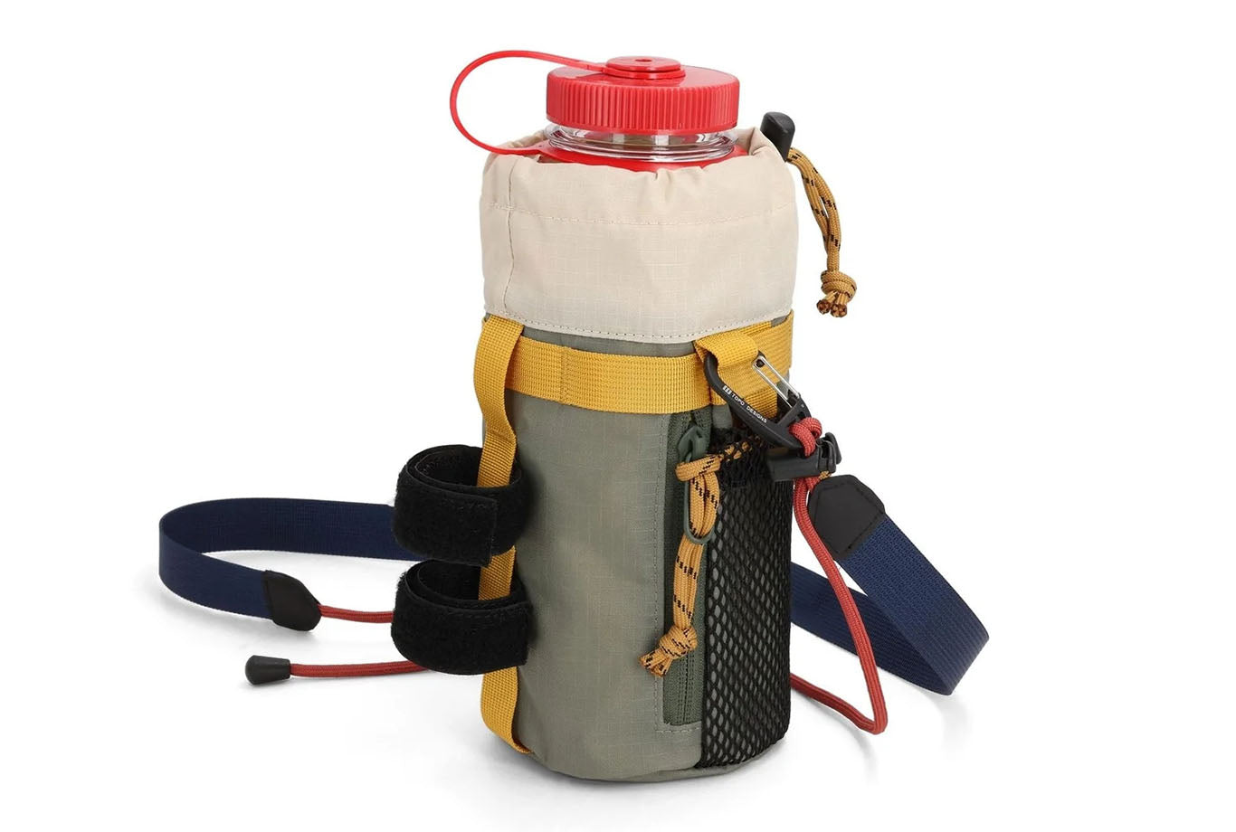 Introducing the Mountain Hydro Sling and experience hands-free convenience. It offers space for storing a reusable water bottle up to 32 oz along with your essentials for wherever the day takes you. This versatile piece comes with an adjustable, removable shoulder strap and detachable velcro bike attachment loops, making it suitable for any hike or ride.