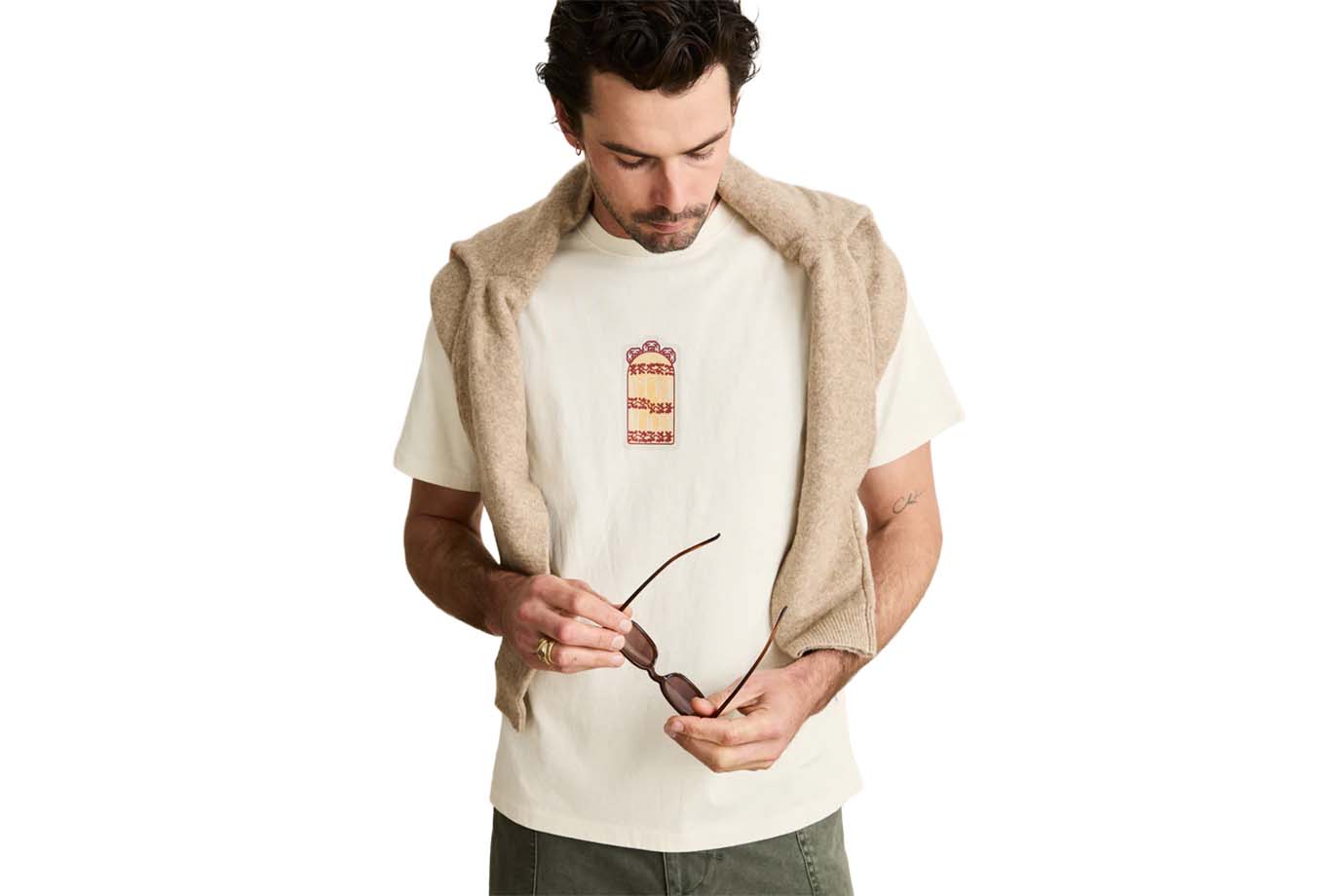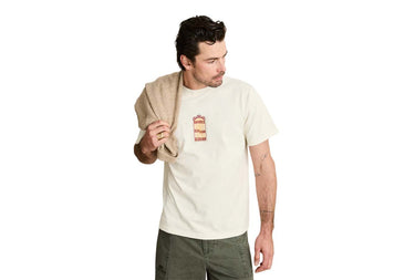 The Pressed Petal Vintage Short Sleeve T-Shirt in Ecru features dual chest artworks on a classic vintage fit block. Its neutral tone and worn-in softness make it a versatile everyday staple.