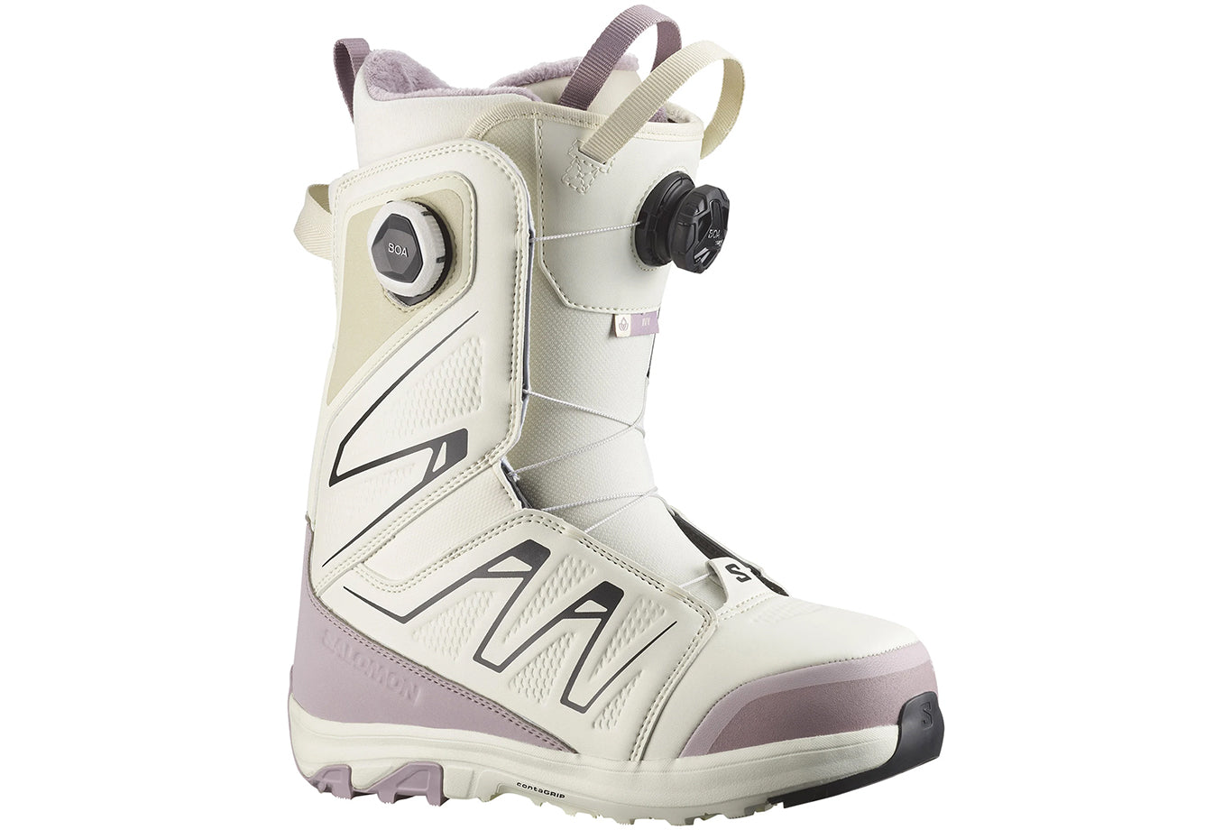 The Salomon Ivy BOA SJ Snowboard Boots offer a tried-and-true fit with a versatile medium flex that hits the spot for any kind of riding. The double BOA® system with a STR8JKT BOA® Pro Harness keeps your heel comfortably locked in, with premium materials and Salomon's excellent Fit To Ride construction. Slip your toes in and say goodbye to boot woes.