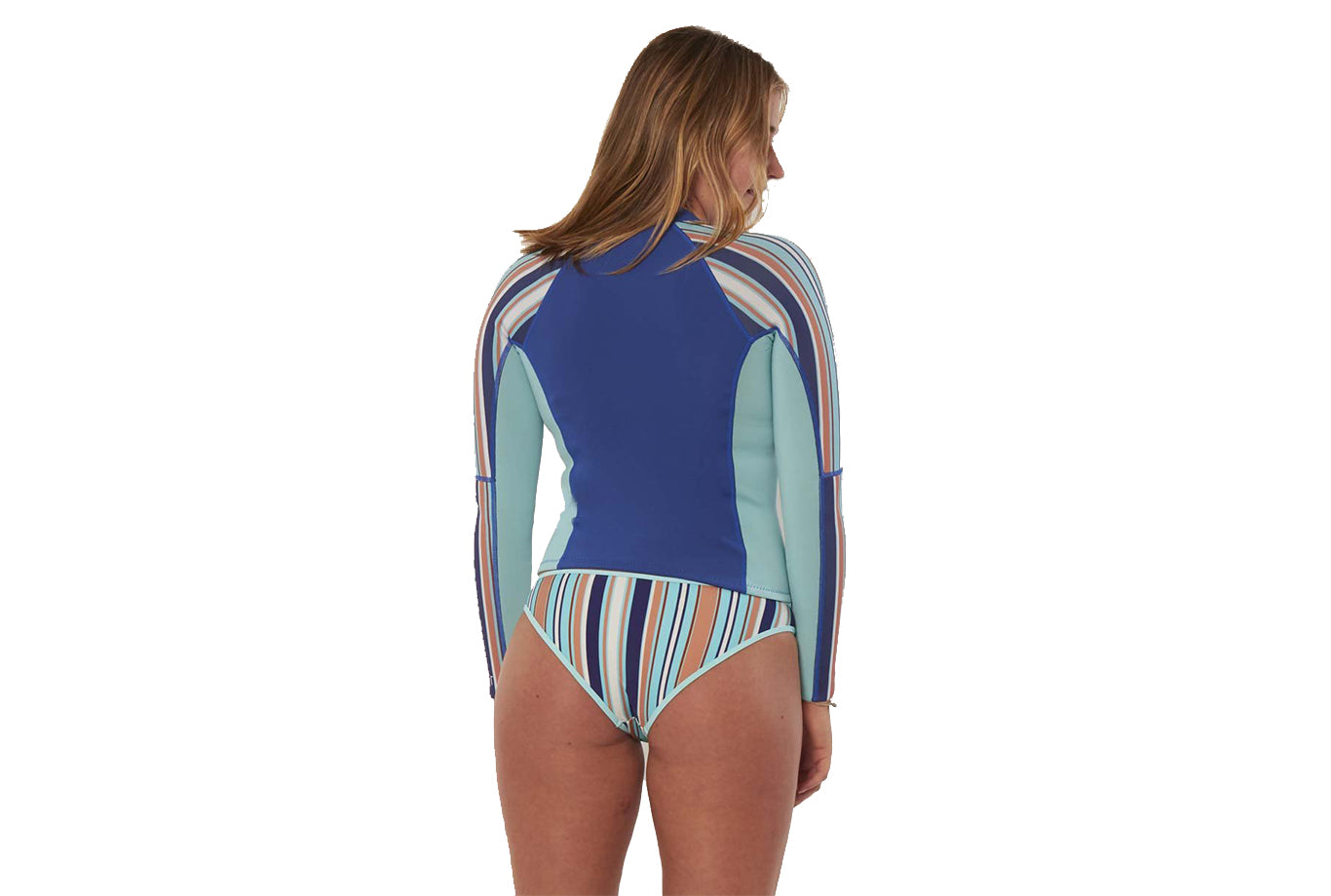 Catch waves, not rays. This Summer Seas jacket is a neoprene zip front jacket that features contrast paneling and flatlock seams.