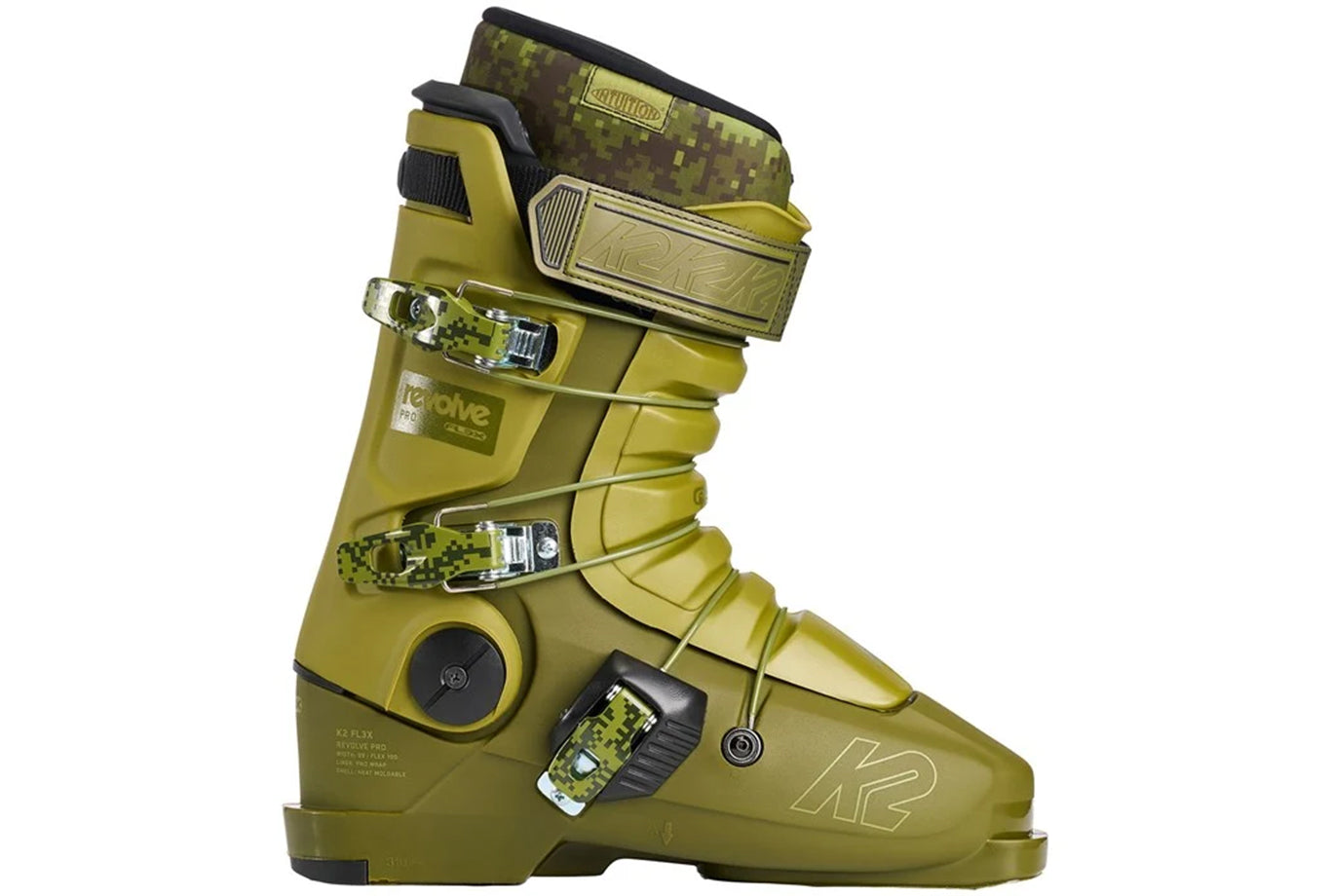 The K2 Revolve Pro ski boots are your ticket to sending it big with featherlight freedom and freestyle flair. Built for park rats and mogul masters alike, these boots are among the lightest in the game, making spins, grabs, and stomps feel effortless. They feature a fully heat-moldable Revolve Shell, 100 flex, and an Intuition Pro Wrap liner providing a customizable fit and responsive control for skiers who live to play on the mountain, and who doesn't love that extra pop of color?!