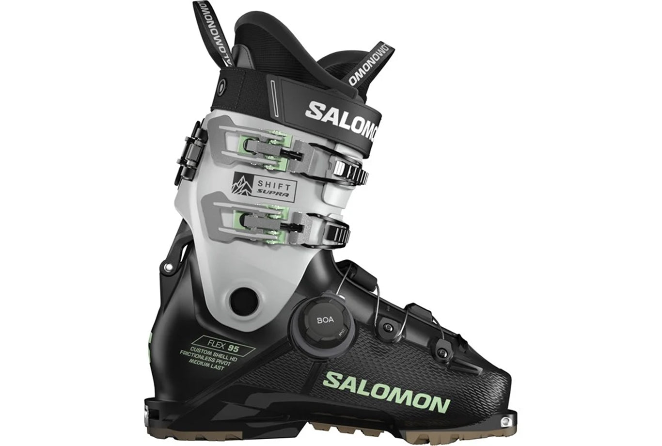 It's official - "Supra" now means "medium volume" in Salomon-speak. Leading the charge is their do-it-all hybrid offering, the Salomon Shift Supra BOA 95 W Alpine Touring Ski Boots. For the adventure skier who mostly rips the ski area and only ocassionally wants the option to tour, this boot offers maximum versatility and doesn't even look like a touring boot with your pants over the cuff. Tech fittings with Gripwalk soles mean you could conceivably set up a touring and alpine setup and use the same boot. Be ready for the time of your life regardless of whether it's inbounds or out with the Shift Supra BOA 95.