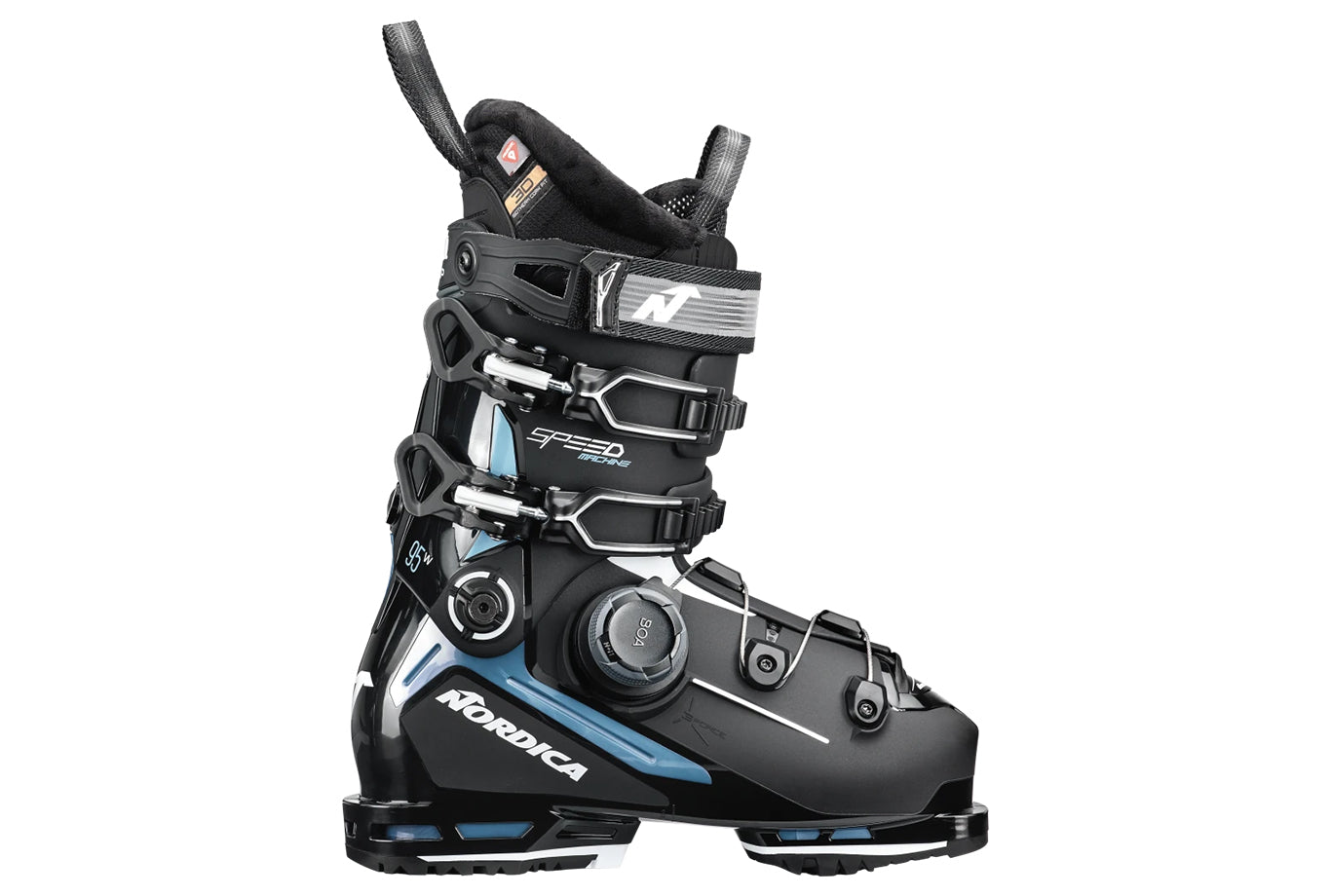 When it’s time to explore the entire mountain, slip into Nordica’s Speedmachine 3 BOA® 95 W. With an emphasis on comfort and performance, this legendary all-mountain boot features the BOA® closure system for exceptional microadjustability. This closure system pairs perfectly with Nordica’s Tri Force technology to maximize the transmission of energy, making it especially easy to initiate turns. A slightly softer flex offers a smooth ride without compromising precision. And for a truly personal fit, the liner and shell can readily be customized. No matter the terrain or conditions, Nordica’s Speedmachine 3 BOA® 95 W amplifies your confidence and fun.