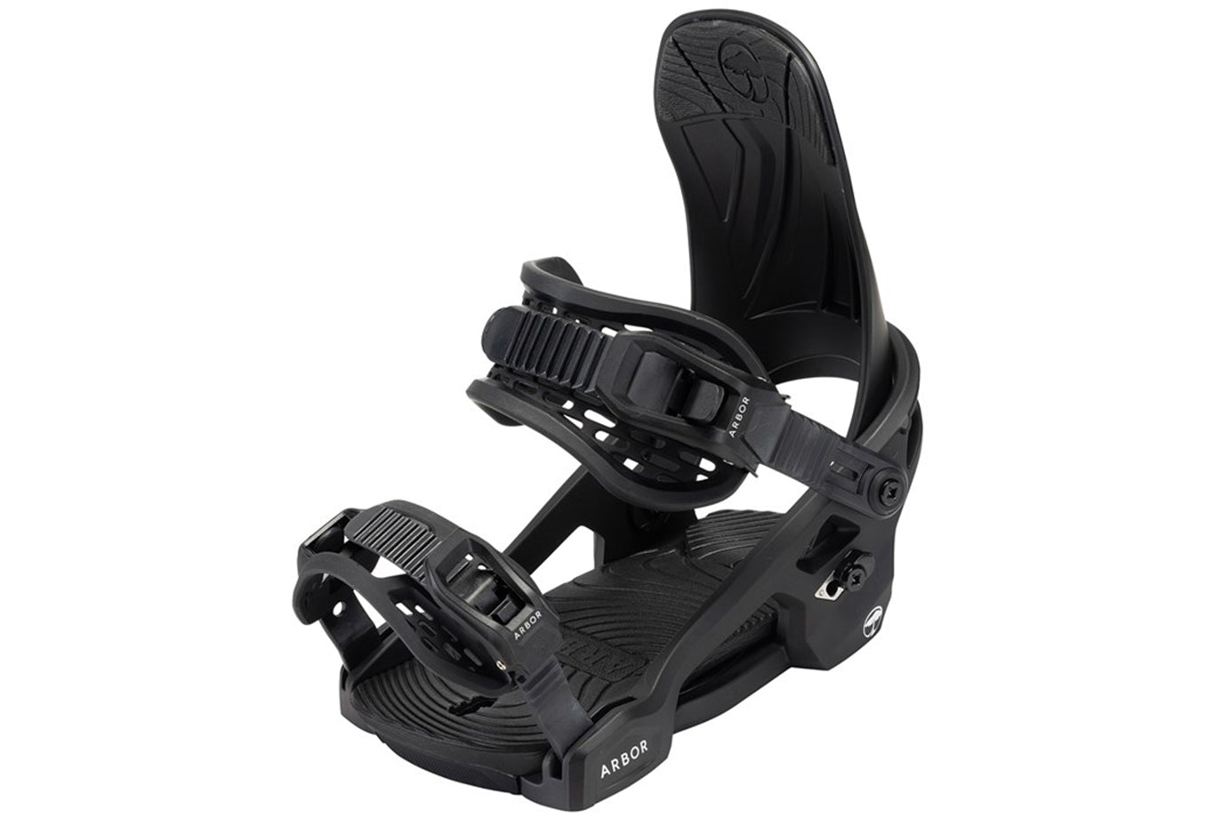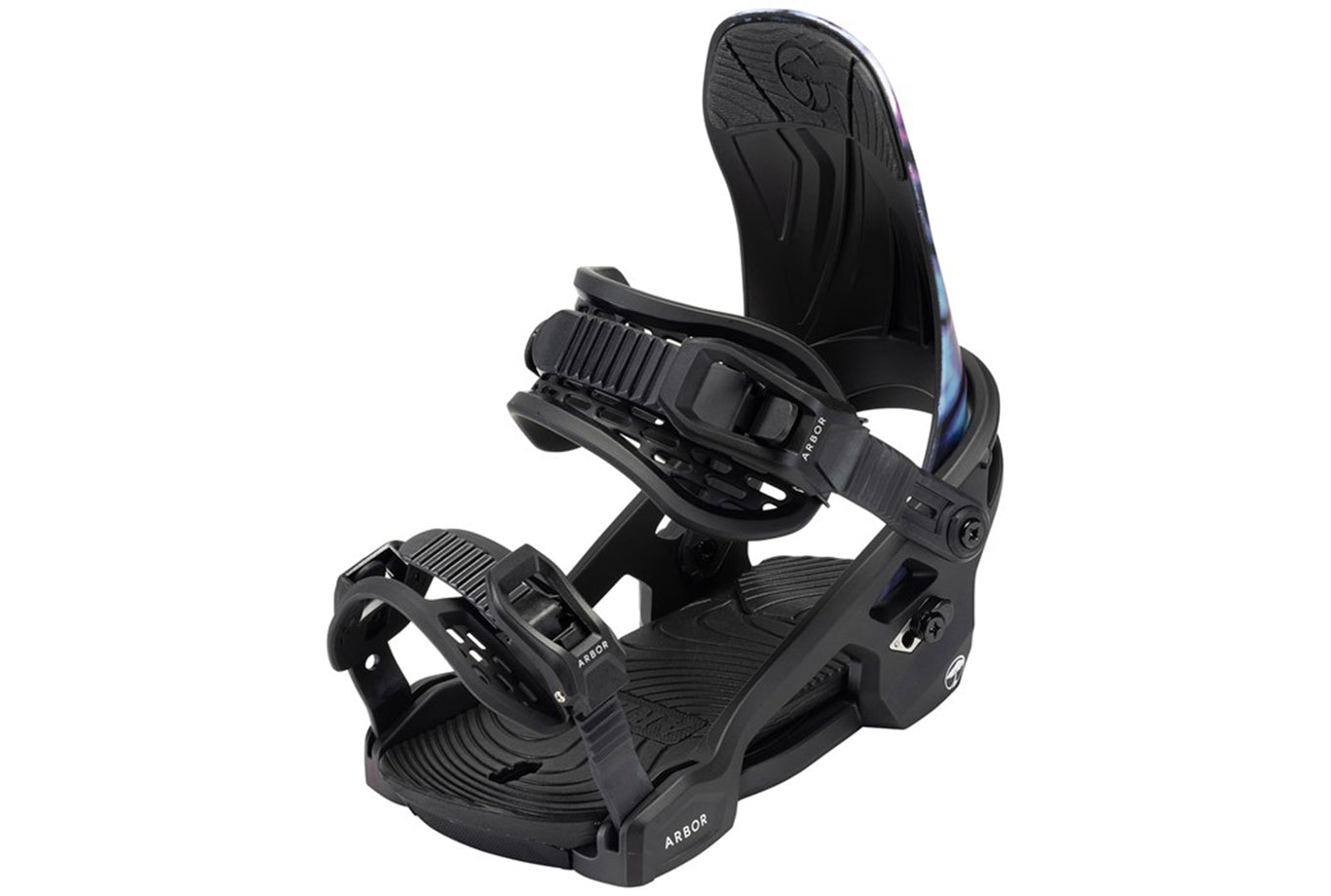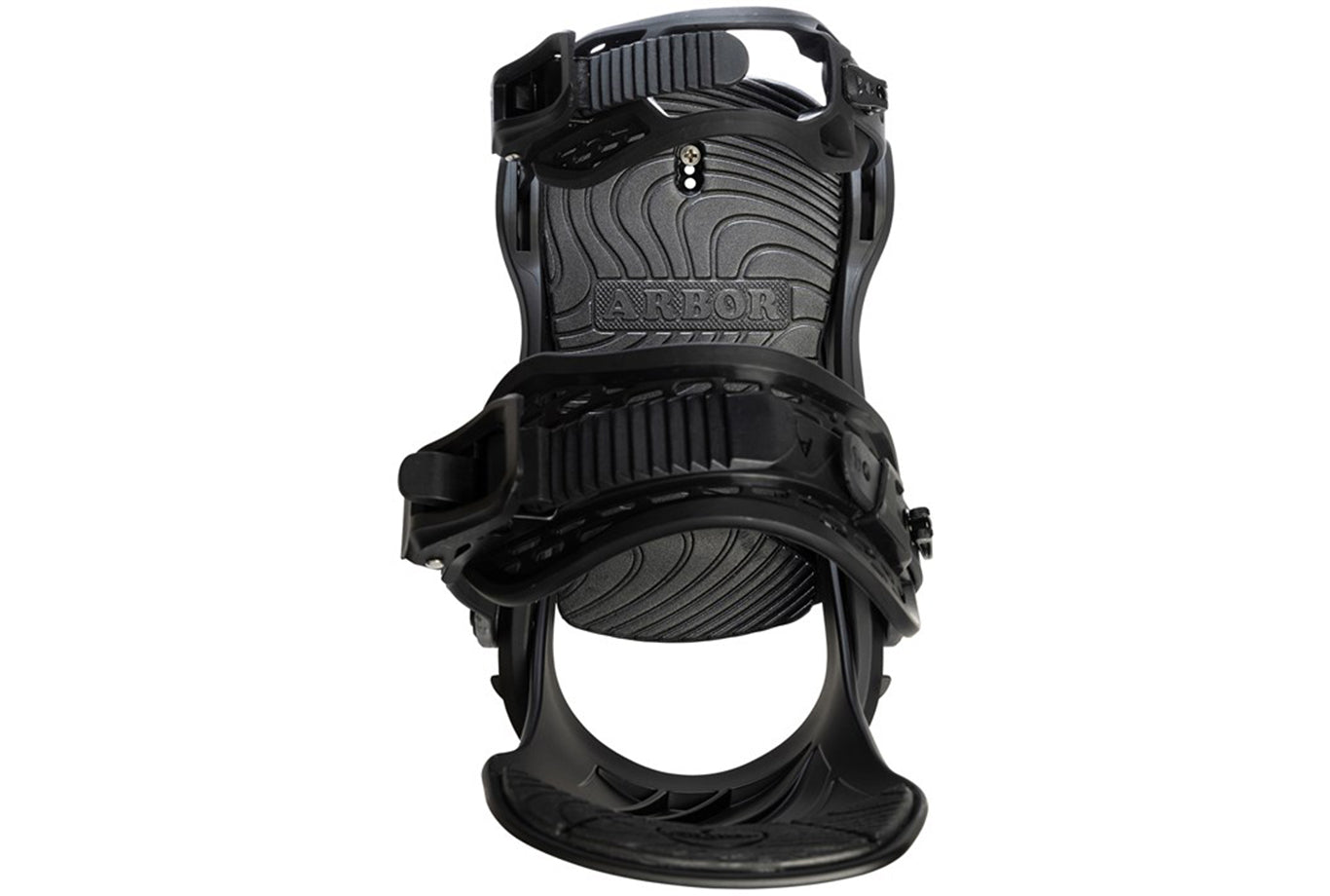 Bow-Strap Adjuster – Arbor's patented "Bow-Strap" adjuster and ladder strap swings out of the way quickly and easily, making binding entry a simple, user-friendly experience. The pre-curved strap steers clear of your boot while maintaining form and durability in even the coldest conditions.