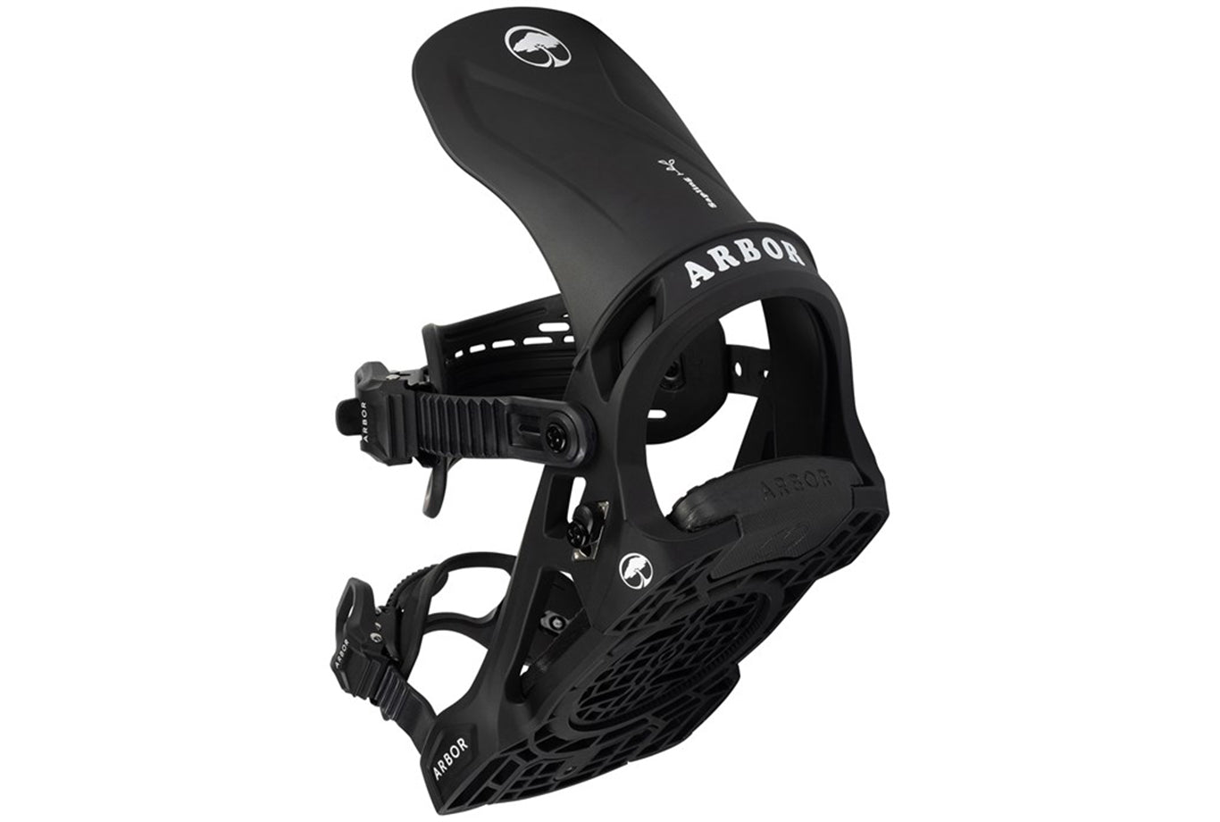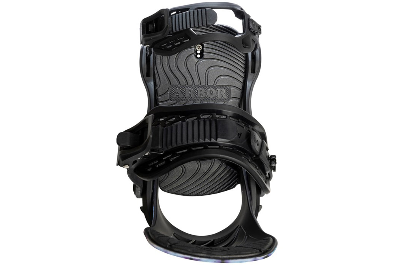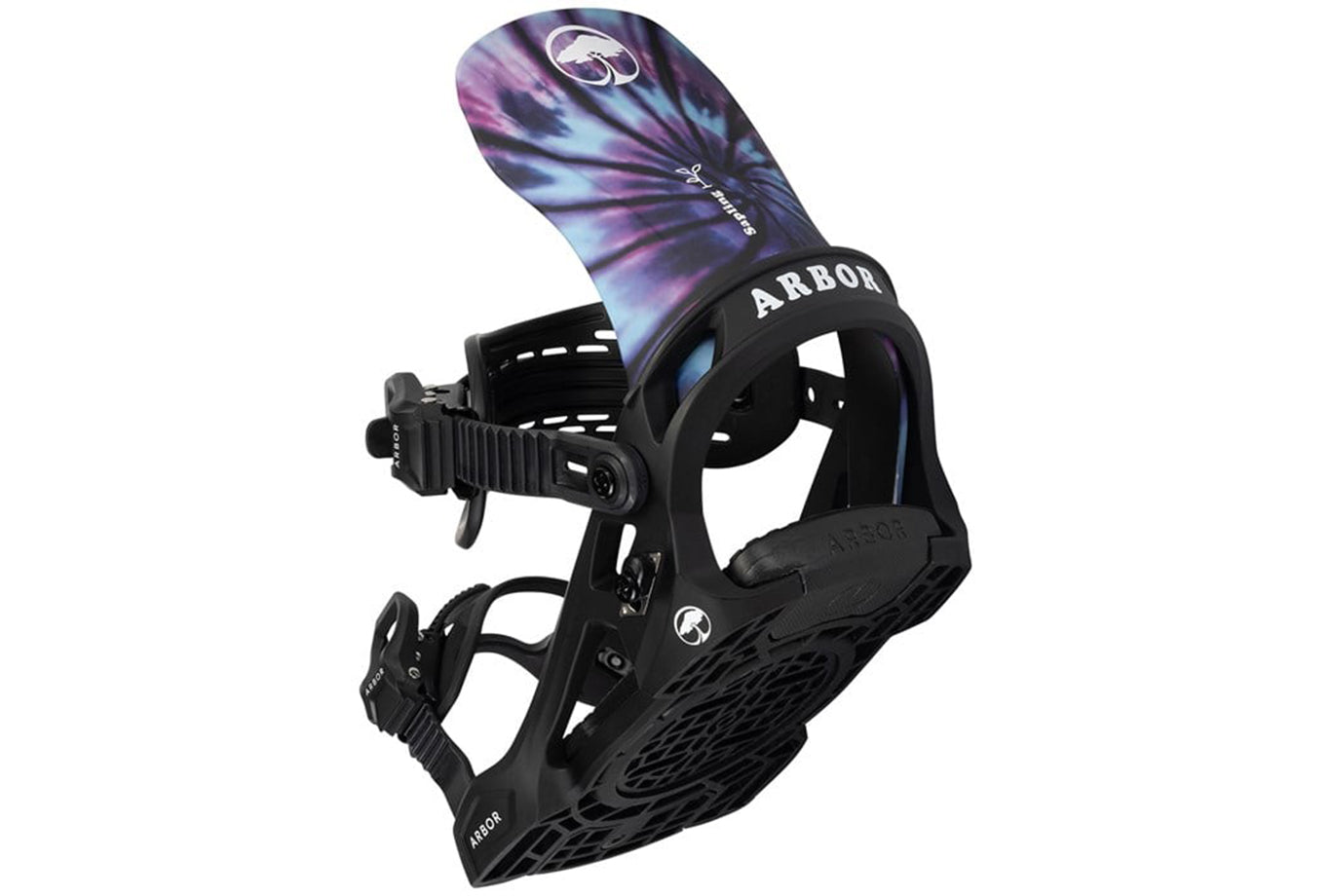 Bow-Strap Adjuster – Arbor's patented "Bow-Strap" adjuster and ladder strap swings out of the way quickly and easily, making binding entry a simple, user-friendly experience. The pre-curved strap steers clear of your boot while maintaining form and durability in even the coldest conditions.