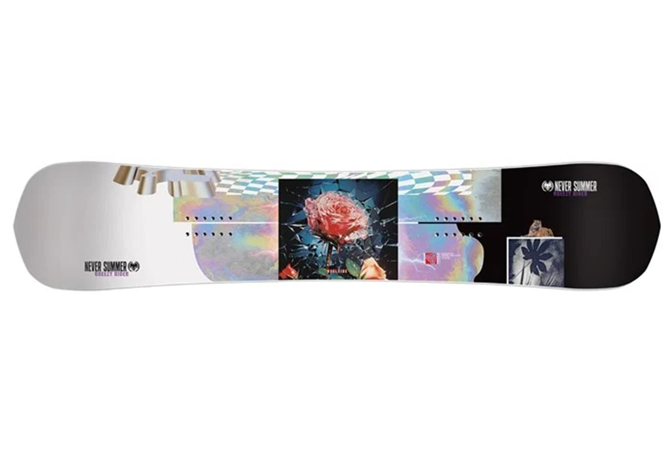 R.I.P Edge-Hold Technology – Never Summer's R.I.P. (Rocker Integrated Performance) Edge Hold Technology enhances grip and stability across various conditions. This configuration allows for smooth turn initiation, a playful and forgiving feel, and explosive pop, making it suitable for riders who want a board that excels in diverse terrains and riding styles