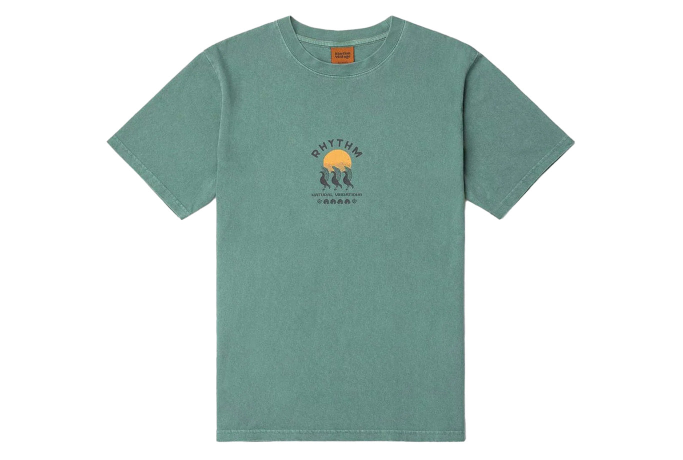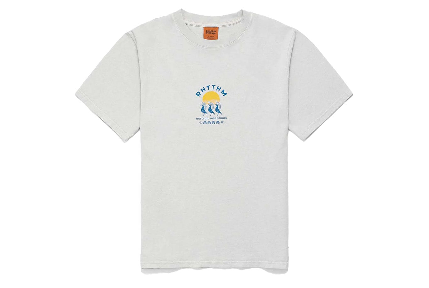 The Natural Vibrations Vintage SS T-Shirt offers vintage charm with a soft hand feel, screen print artwork, and Rhythm’s signature labels and trims.