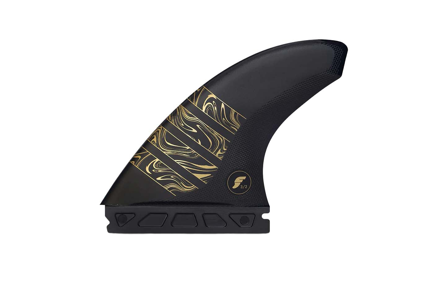 The Vector 3/2 is a Speed Generating fin, maximizing water attachment over multiple planing surfaces, resulting in lift and reduced drag. The concave surface and twist in the upper half provide a unique grip and projection sensation, delivering fluid speed generation in smaller waves and powerful connection and increased speed in larger surf, resulting in faster and improved turns.