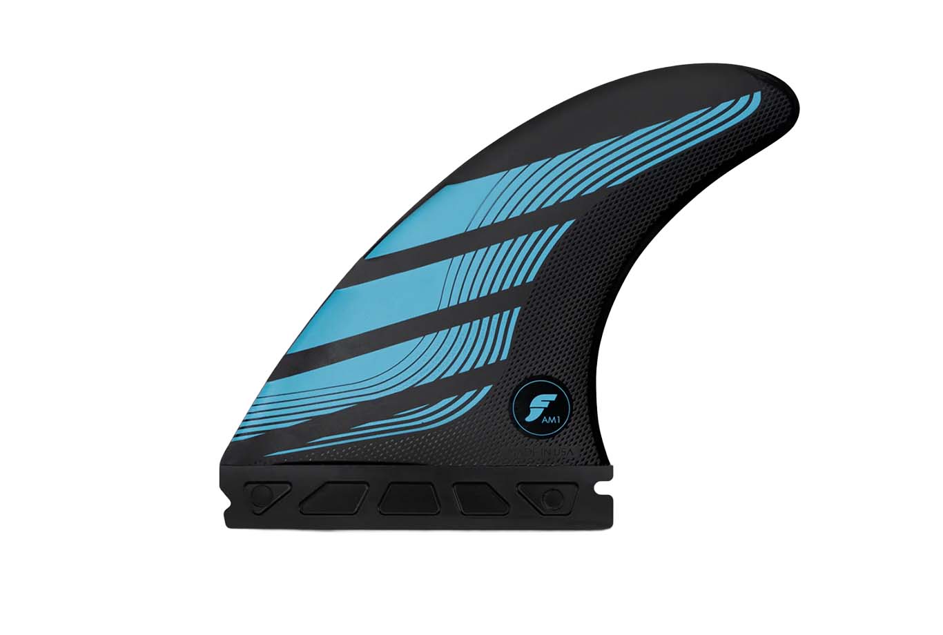 The AM1 is a medium size thruster fin set in the rake category built in Alpha construction. Made in Huntington Beach, the Alpha product line combines Bureo’s NetPlus recycled fishing nets with Futures’ Compound 6 (C6) carbon and air infused technology.
