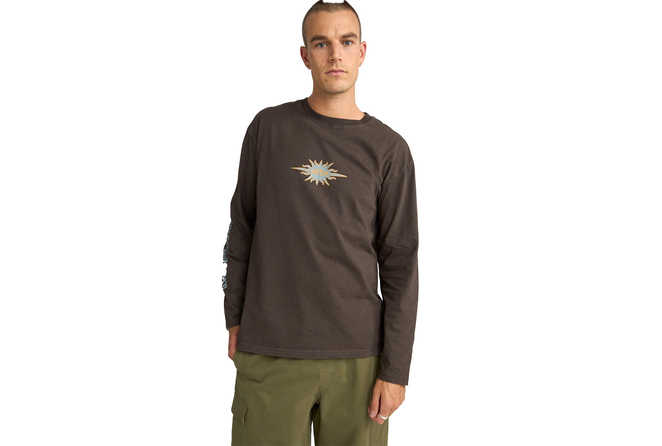 The Flame Printed Vintage LS T-Shirt is a staple Rhythm silhouette made with a washed dye and classic cracked ink graphic for an authentic worn style. Our Flame Vintage LS T-shirt features a centre chest and back graphic reminiscent of nostalgic Y2K band tee vibe. Made from 100% cotton.