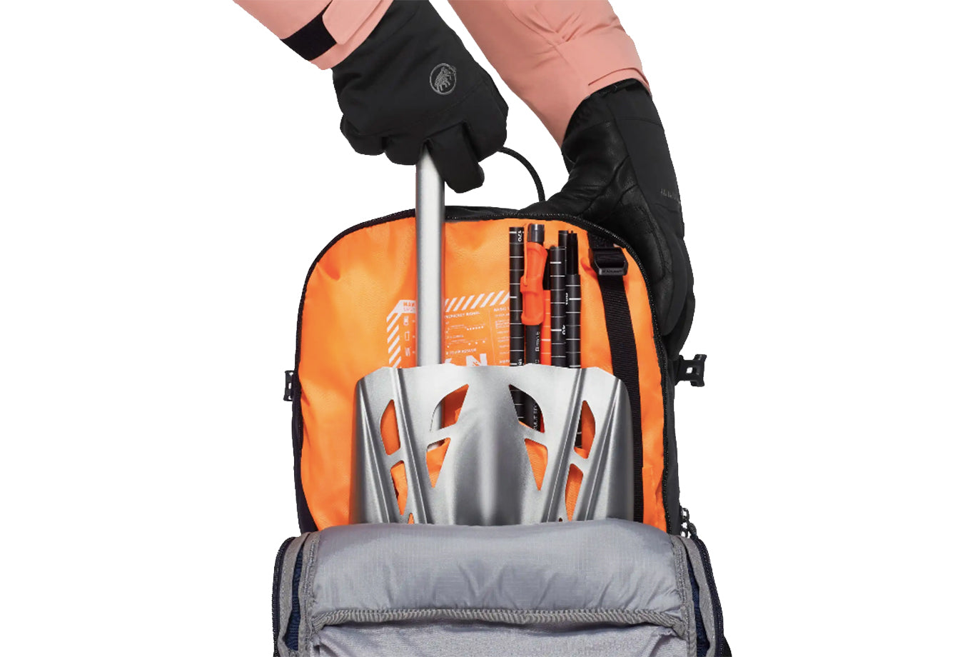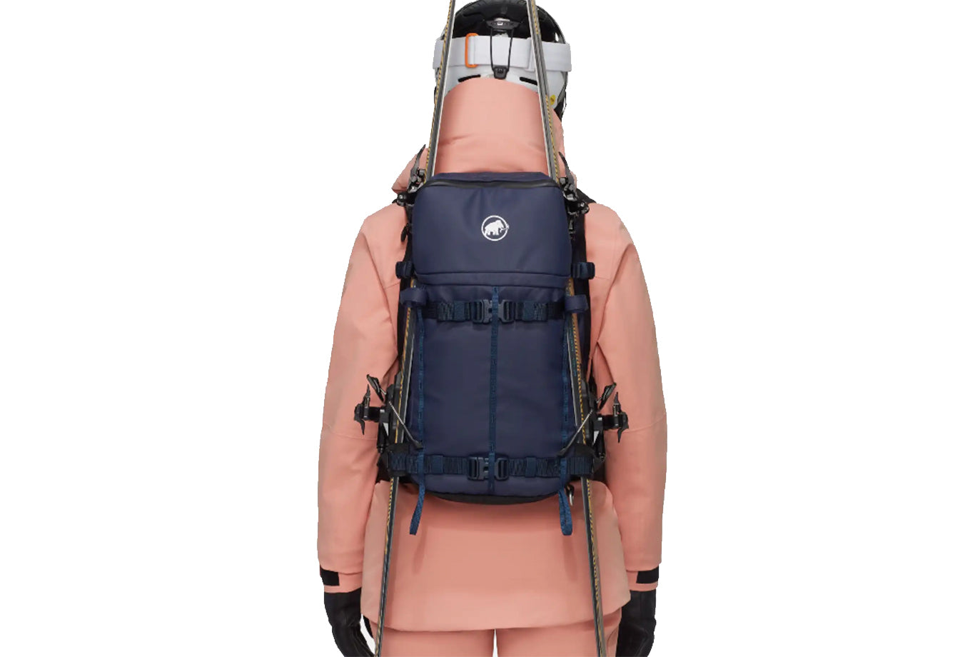 The legendary Nirvana is our true snow sports pack, optimized for freeriding and lift-supported ski touring. Versatile and well-equipped with specialized winter features, the Nirvana 28 is the ideal partner for a wide range of plans. Organize and stow all your gear with easy access to the main compartment through the 270° zippered back panel. A separate avalanche equipment compartment ensures you are always prepared, while a dedicated internal sleeve makes the pack compatible with the Mammut Back Protector. Skis and splitboards can be attached diagonally or A-frame style. An optimized carrying system and women's fit, features adapted shoulder straps, a tailored hip belt, and a shorter back length for maximum comfort and freedom of movement. The specially selected fabrics, including the extremely robust outer, are PFC-free and made from recycled materials.