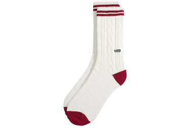 The Larrea Crew Socks blend cozy sweater-knit texture with a sport-inspired design. Made with cotton and finished with jacquard stripes and an embroidered Vans logo, this pair balances comfort and character with every step.