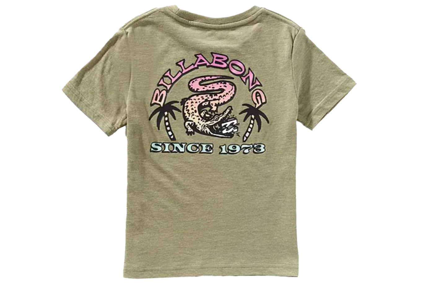 - "Billabong" logo, alligator character graphic, and other verbiage on the front and back