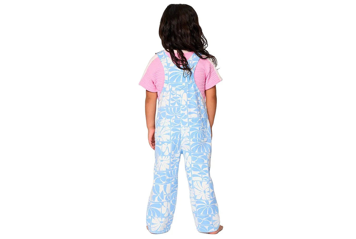 The Artist Of The Search Overalls for girls are made from durable cotton twill and designed with a relaxed fit for easy movement. Featuring adjustable straps, side and back pockets, embroidered logo, metal snap buttons, and an all-over yardage print, these overalls are perfect for playful days with practical style.