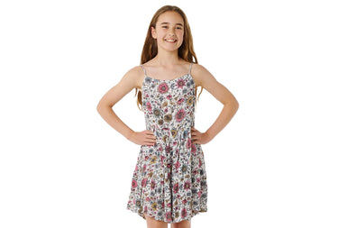 Get ready to dance under the sun with this dress. Featuring a vibrant floral print and lightweight fabric, this dress is perfect for girls who love to stand out on the beach or by the pool.