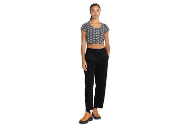 - Tonal Stone embroidery at wearer's back left leg, Tonal Volcom script embroidery at wearer's right back under waistband
