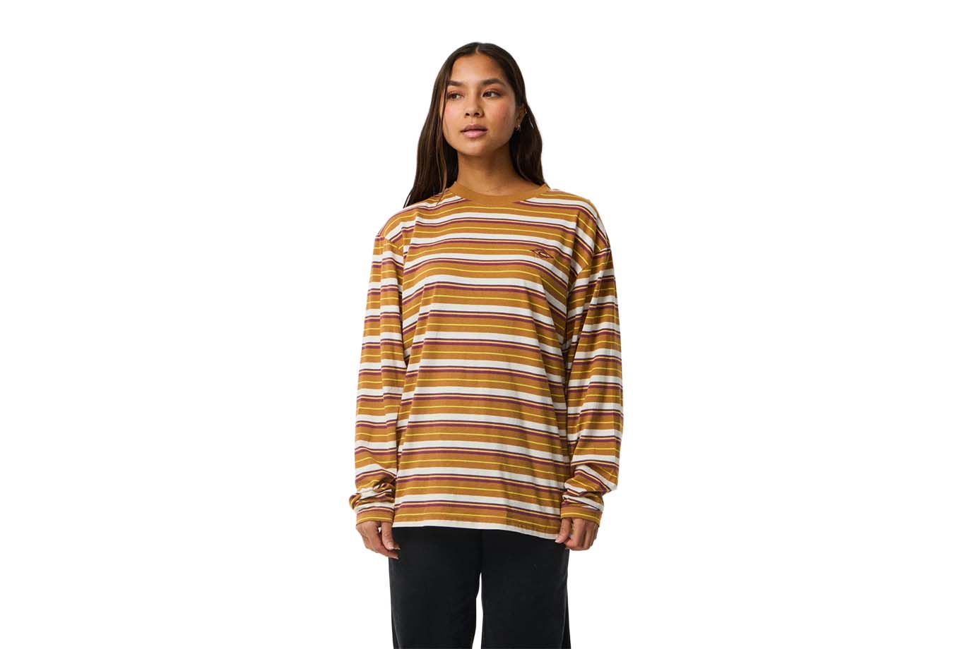 Yarn-dyed stripes and an OG fit define the Stephanie Gilmore Stripe OG Long Sleeve Tee. Made from soft cotton jersey with a silicon wash, it features chest embroidery and woven flag label for timeless surf style in a long-sleeve silhouette.
