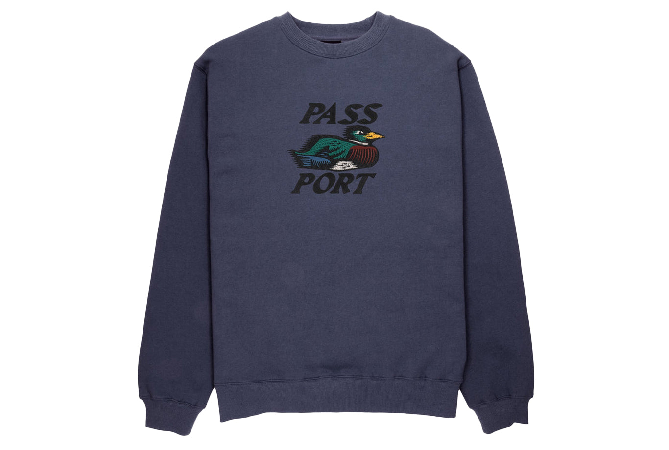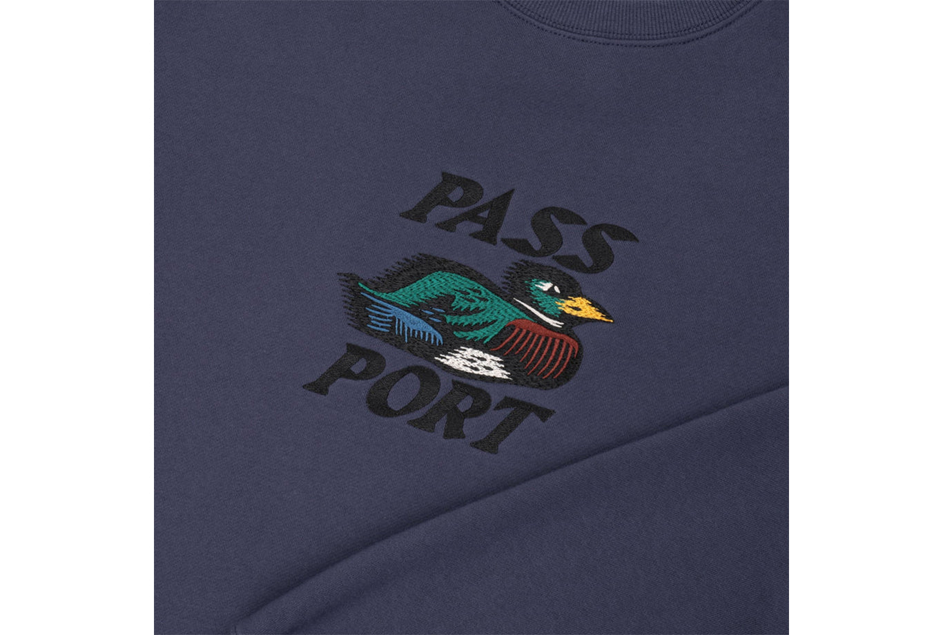 Pass-Port Fast Duck sweater from Range #44. This Pass-Port jumper is crafted from a cotton-polyester blend and features an embroidered design on the front, finished in the classic Pass-Port sweater fit.
