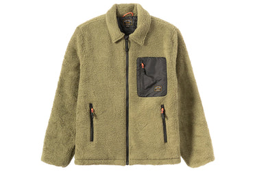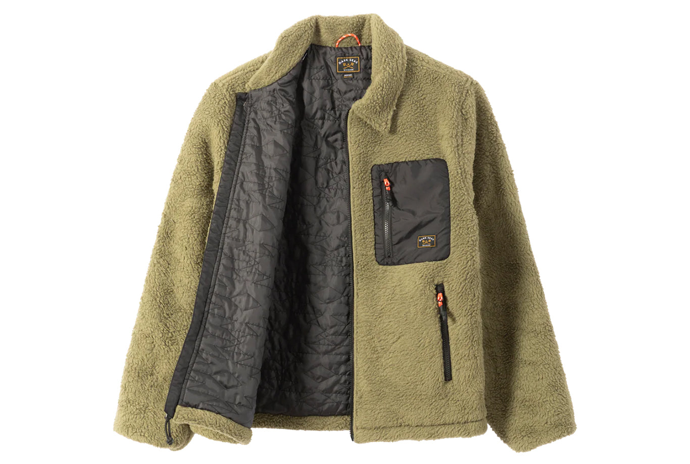The Hancock delivers heavyweight warmth with a nod to vintage outdoor gear. Constructed from ultra-soft brushed sherpa fleece and lined with a southwest-inspired quilted taffeta, this zip-up jacket includes a zippered nylon chest pocket, waist pockets, and bold trident embroidery at the back.