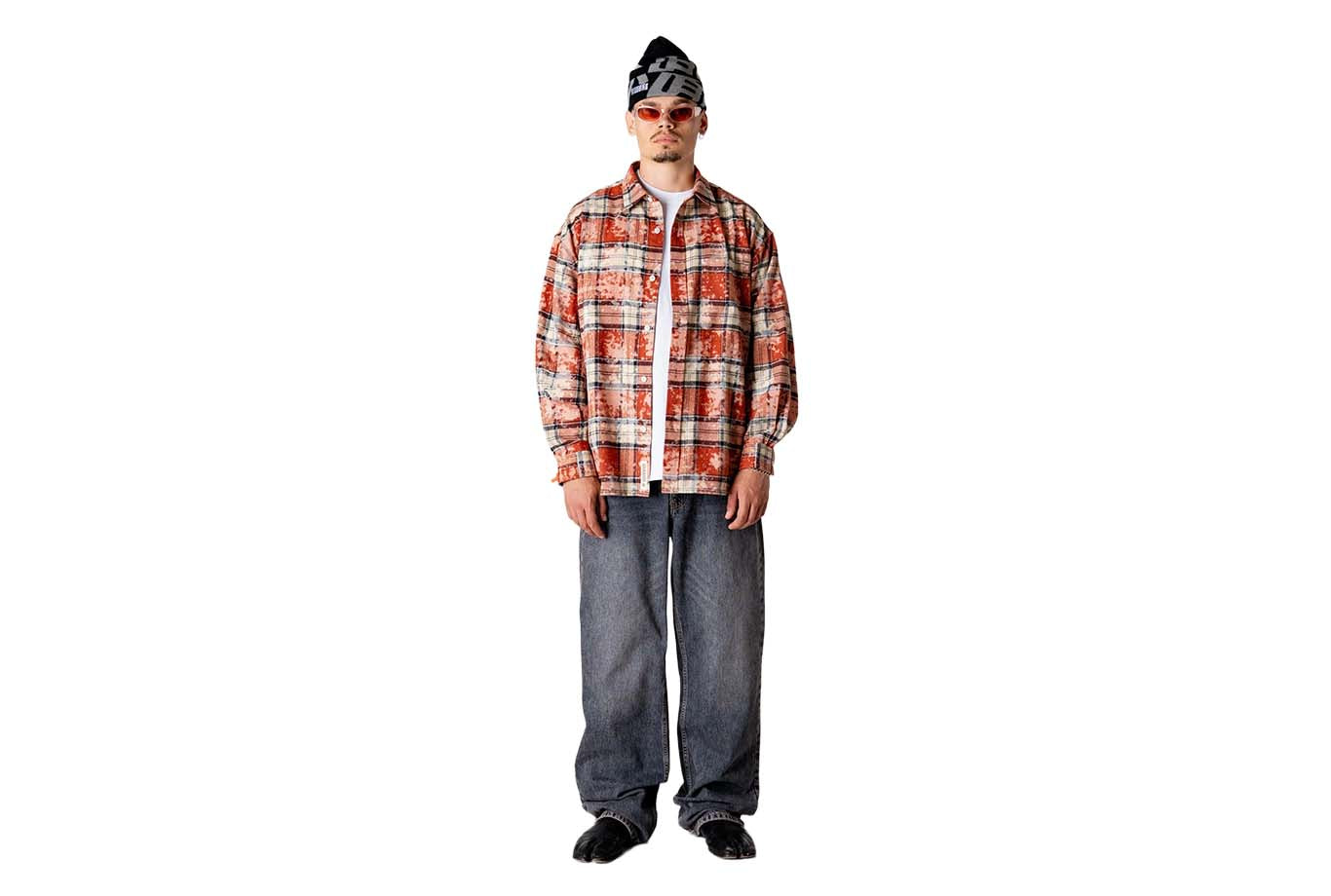 A fresh take on flannel with a worn-in and bleached-out finish. The pattern feels familiar but the details push it into something more offbeat and easy to wear.