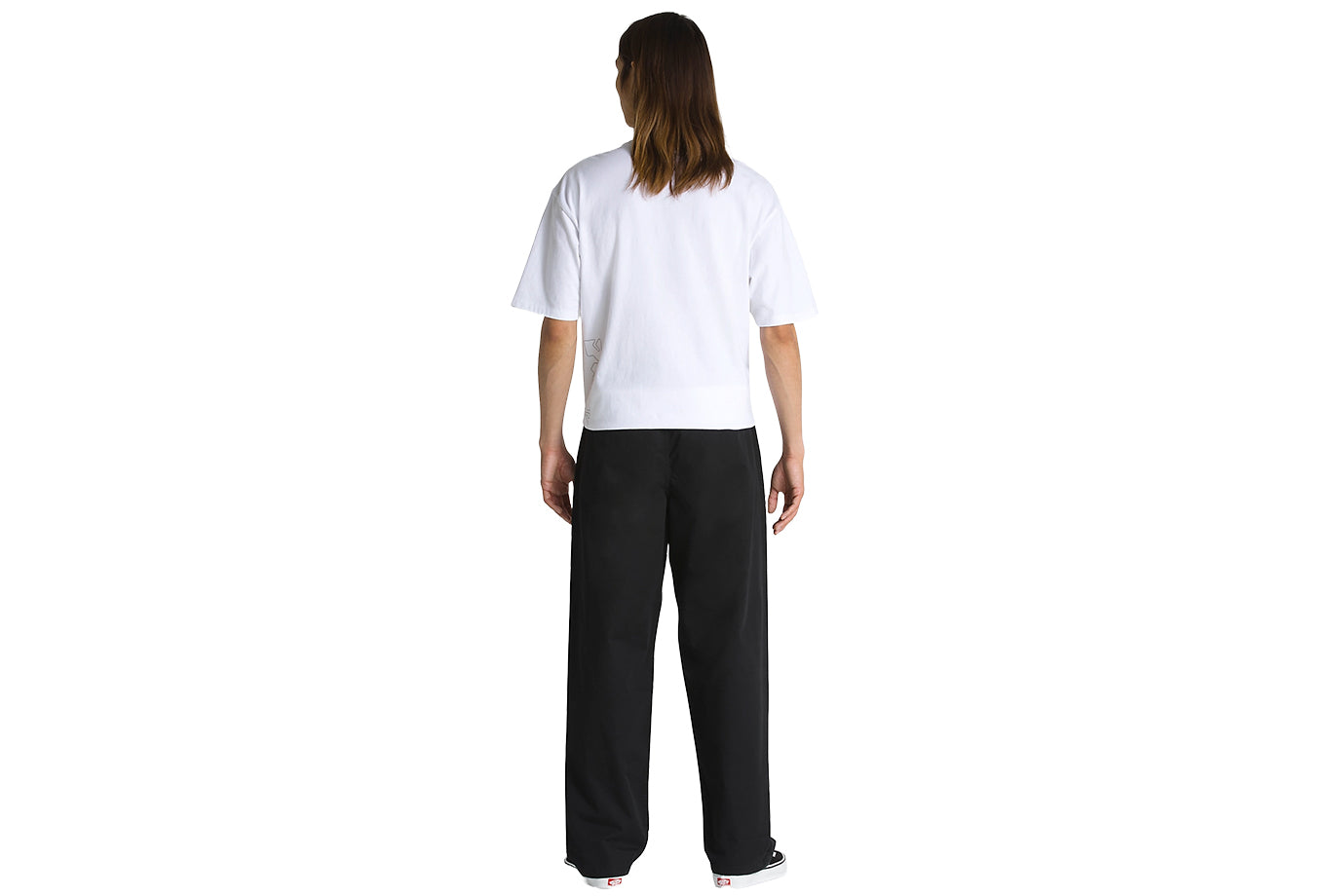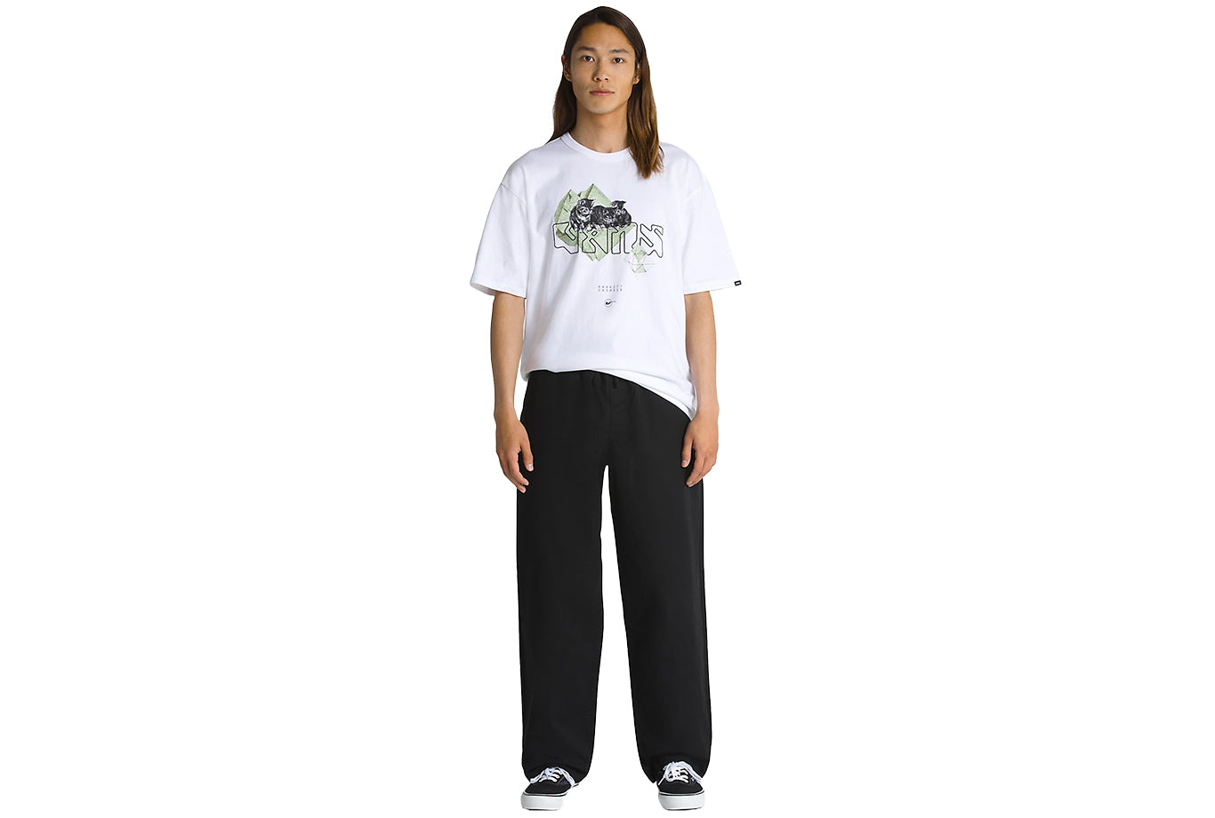 The Range Baggy Tapered Elastic Waist Pants gives you all the style, comfort, mobility, and skateability you need to make a personal statement on and off the board. This pair of easy pull-on pants has an elastic waist for all-day, everyday wear, and a baggy fit through the hip and thigh, ending in a tapered leg. It also features Drop-V bar tack embroidery at the side seam and pockets, a key loop on the right rear waistband, and a branded flag label sewn into the hem of the leg opening that's visible when cuffed.